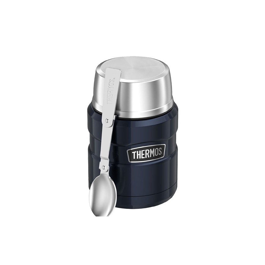 Termos obiadowy Thermos King 470ml z łyżką granatowy - nakrętka naczynie, ciepło 9h lub zimno 14h