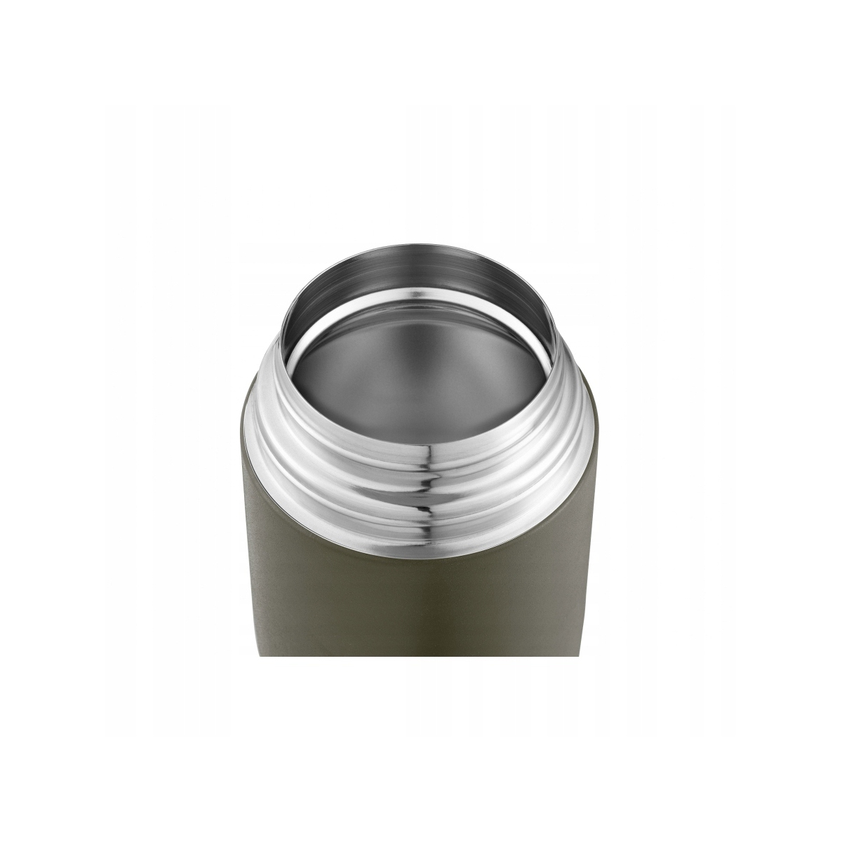 - Dla zabezpieczenia przed przypadkowym upuszczeniem termosu, co zdarzyć mogłoby się gdy trzymamy go w zmarzniętej dłoni lub rękawiczce, pokryty został od zewnątrz specjalną oliwkową, matową powłoką antypoślizgową.