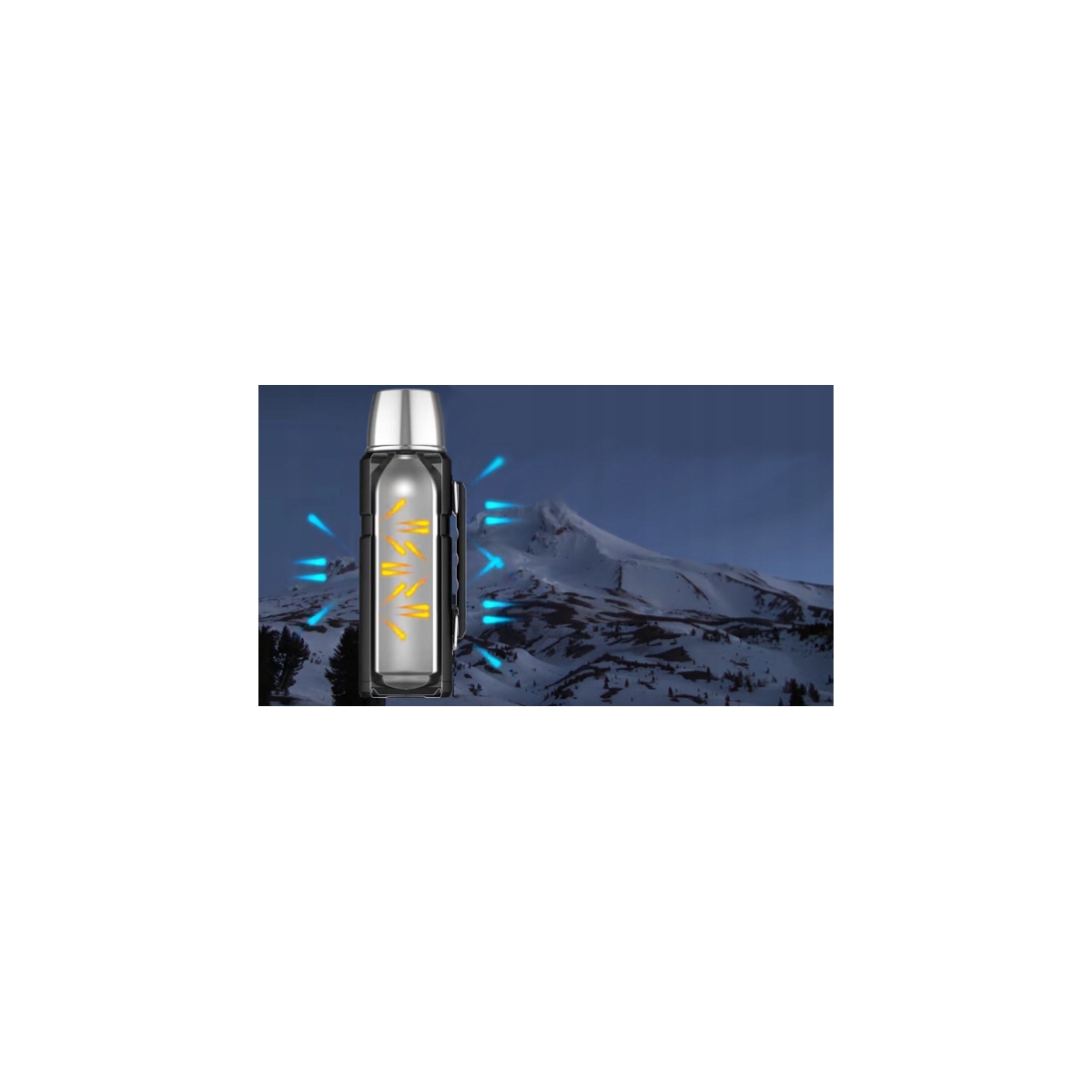 Termos Thermos KING 1,2l - to termos wyprodukowany przez wiodącego producenta, który jako pierwszy w 1904 roku użył technologii próżniowej w produktach komercyjnych. Zastosowany system próżniowy Thermax, pozwala na utrzymanie ciepła lub zimna napoju przez okres 24 godzin.
