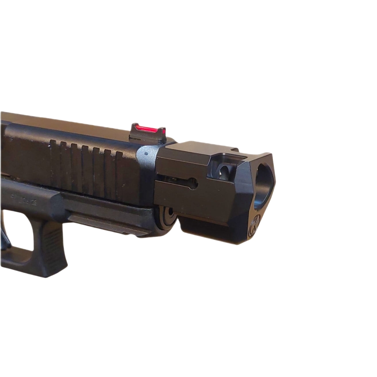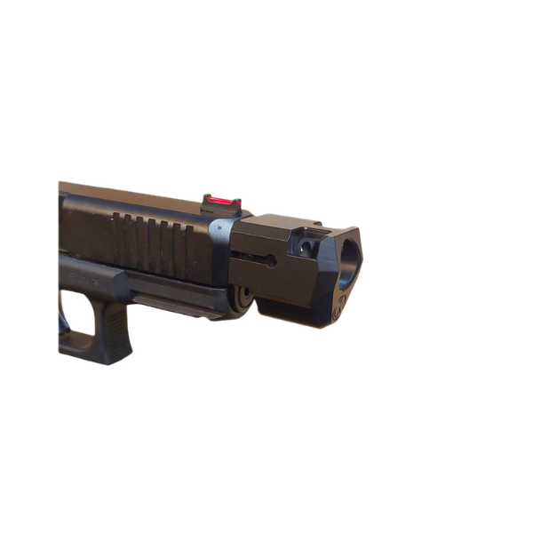 Kompensator dla pistoletu Glock przeznaczony jest do redukcji odrzutu i podrzutu. Kompensator posiada otwory wylotowe ustawione pod kątem 90 stopni w obu płaszczyznach dające lepszą kontrolę nad bronią co przekłada się na bardziej precyzyjne strzelanie oraz szybszy powrót do pozycji wyjściowej i oddawanie kolejnych strzałów.