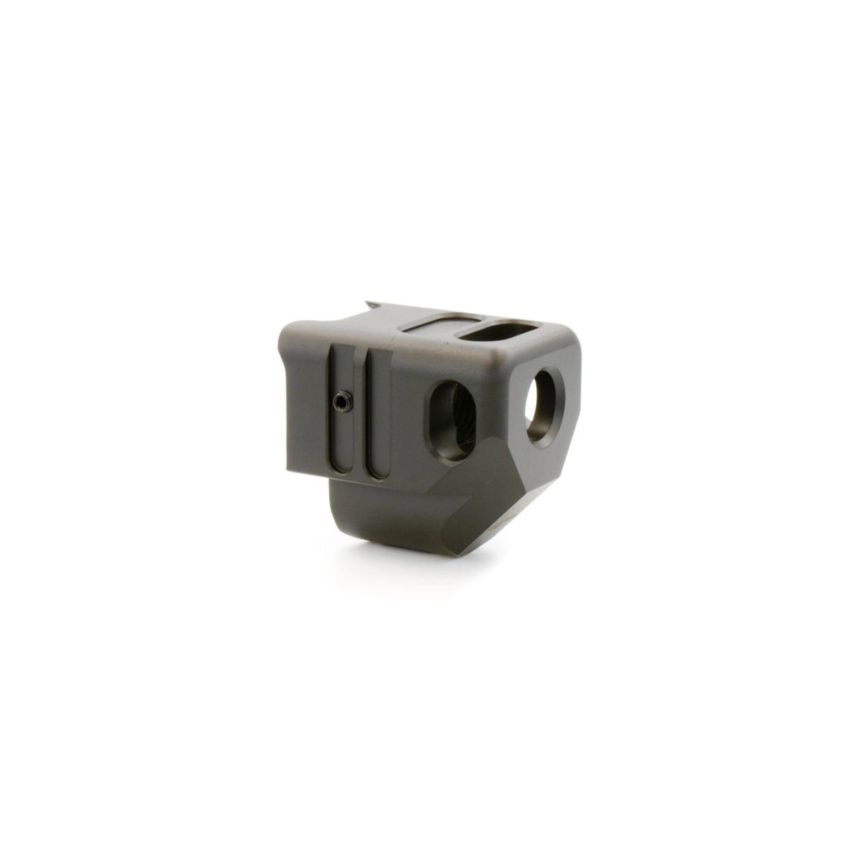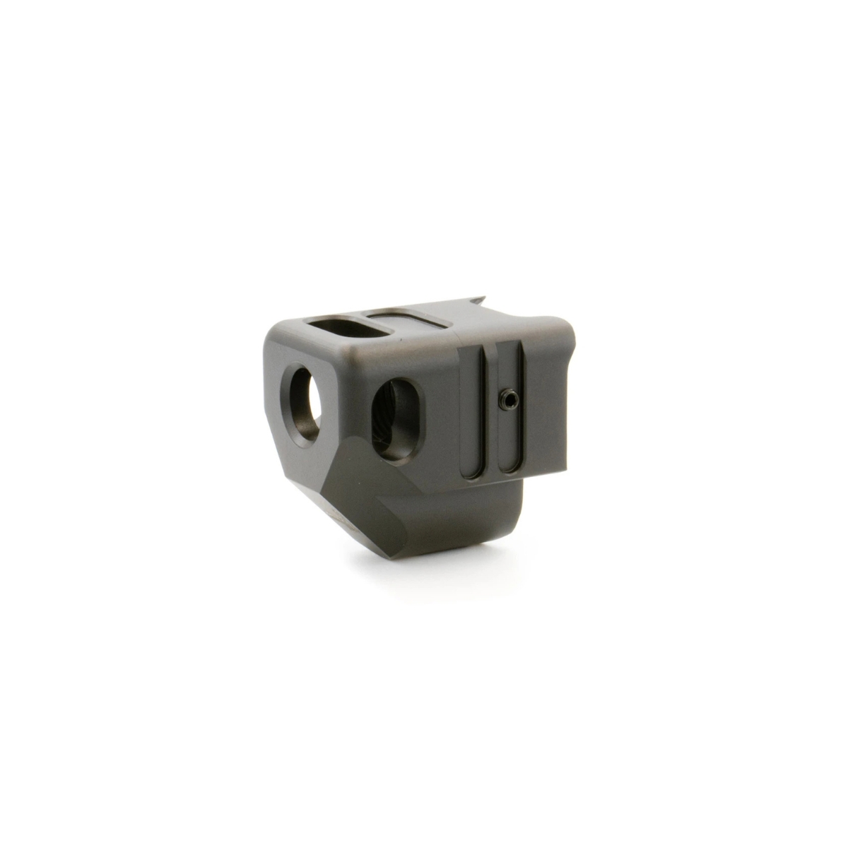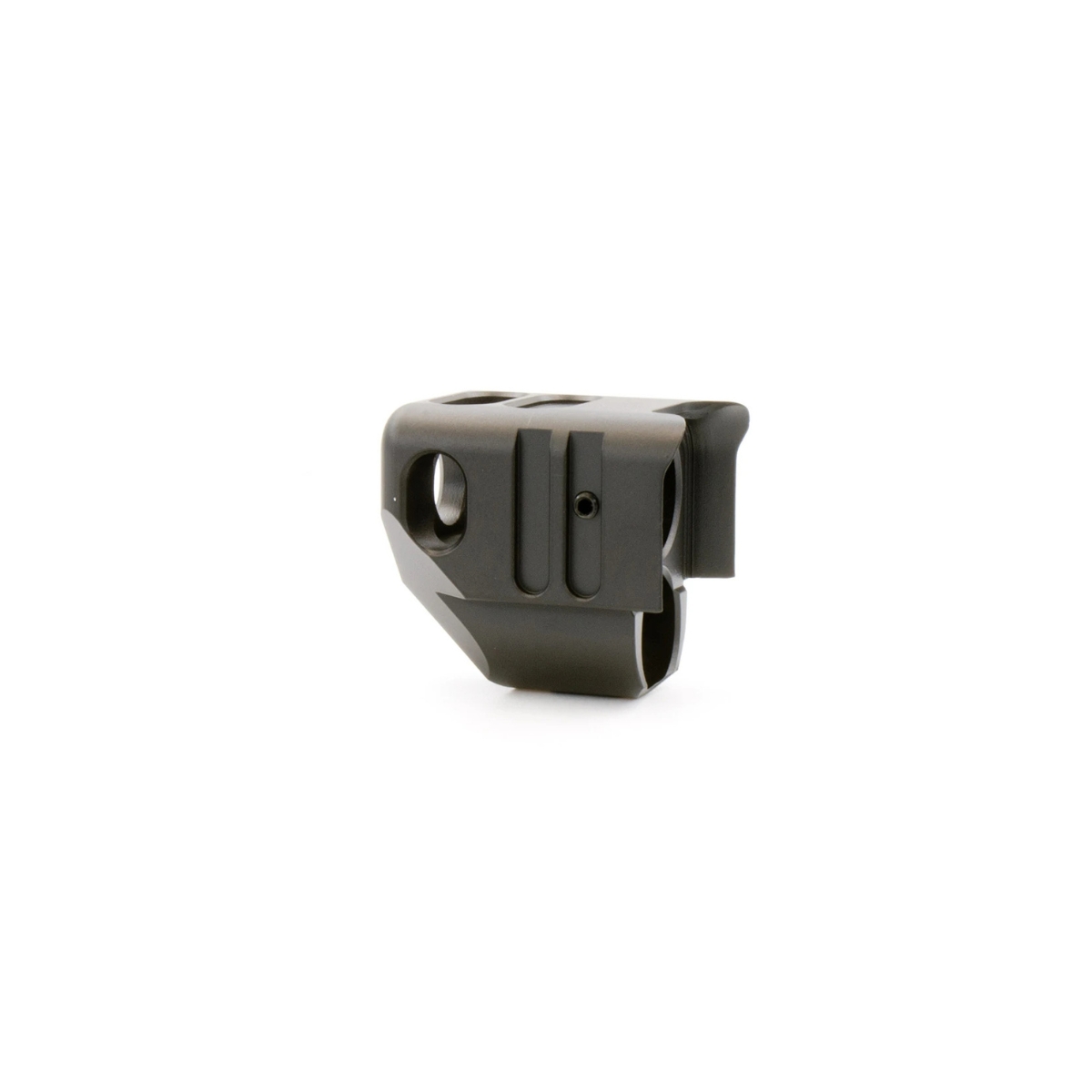- Wysoka jakość wykonania – kompensator wykonany z lekkiego aluminium, z powłoką odporą na zużycie (Cerakote lub podobna), co gwarantuje trwałość, odporność na warunki zewnętrzne i wielokrotne użycie.