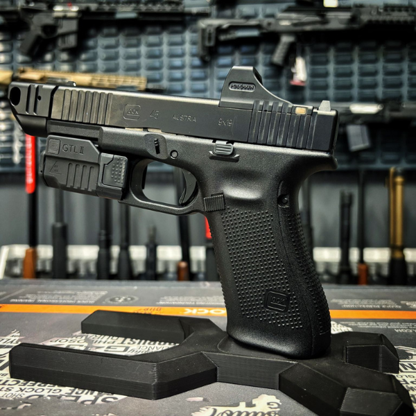 - Łatwy montaż – urządzenie mocuje się bezpośrednio do kompatybilnej lufy / zamka Gen 5 i nie wymaga trwałych, skomplikowanych modyfikacji konstrukcji.