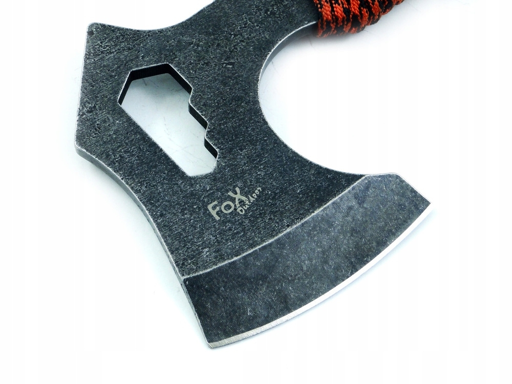 Toporek FOX PARACORD 7.708 - wytrzymały i poręczny taktyczny Tomahawk o jednostronnym ostrzu. Głownia została wykonana ze stali nierdzewnej hartowanej powierzchniowo, która dla zabezpieczenia przed korozją oraz czynnikami zewnętrznymi została zabezpieczona powłoką galwaniczną w kolorze steel grey.