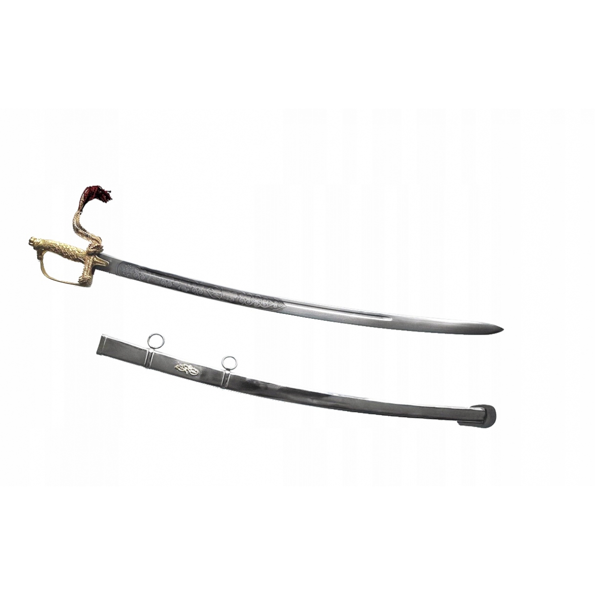 Replika szabli nie naostrzona, nie nadaje się do naostrzenia. Produkt nie jest przeznaczony do walki i nie spełnia cech użytkowych według Ustawy o Broni i Amunicji. Zakup nie wymaga pozwolenia.