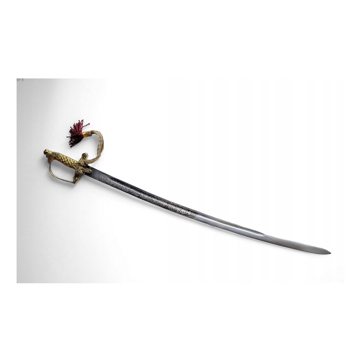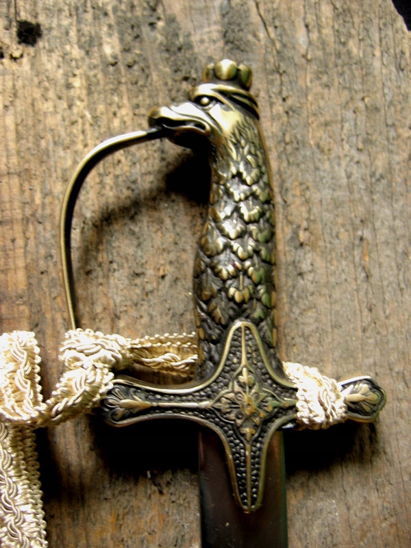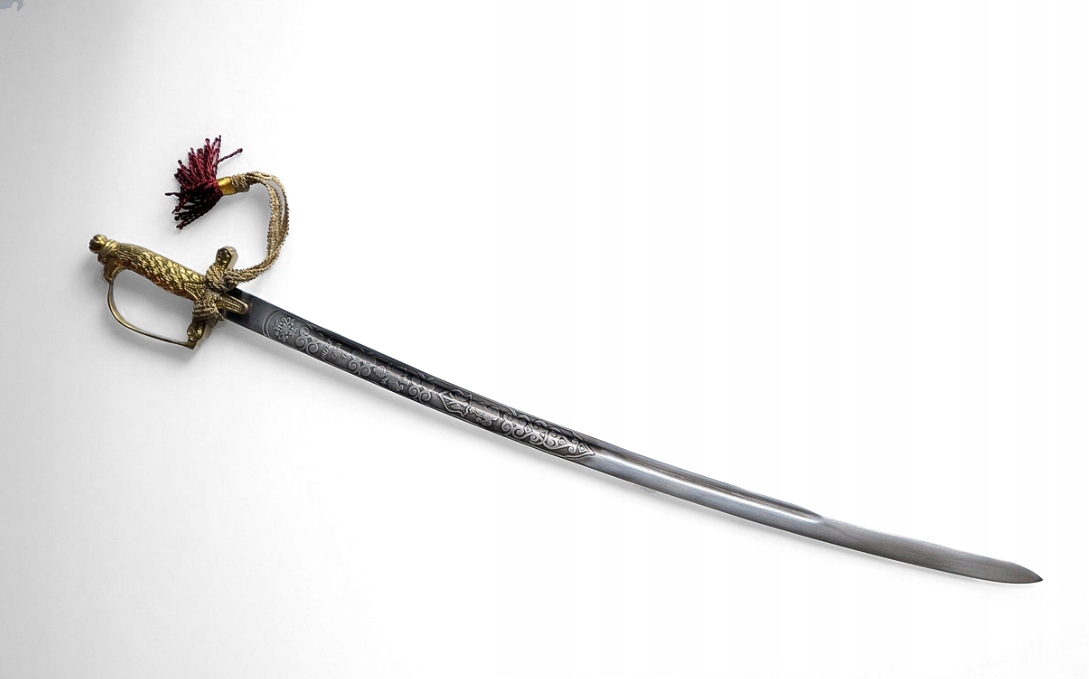 - do rękojeści zmocowano ozdobny temblak ze złotej taśmy zakończonej czerwonym chwostem