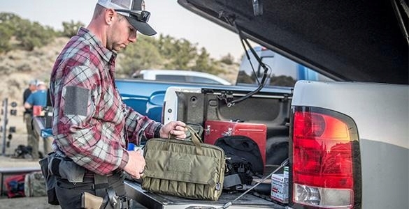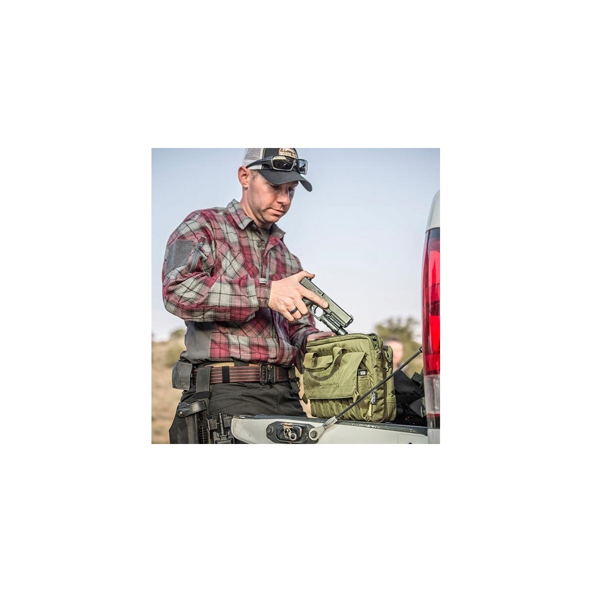 - Wnętrze obszyte rzepem kompatybilnym z Versatile Insert System® , co daje możliwość dopinania dodatkowych organizerów oraz ładownic i zapobiega przemieszczaniu się broni