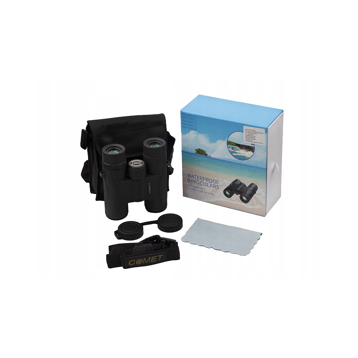 W komplecie: lornetka, pokrowiec, pasek do lornetki oraz ściereczkę do czyszczenia.