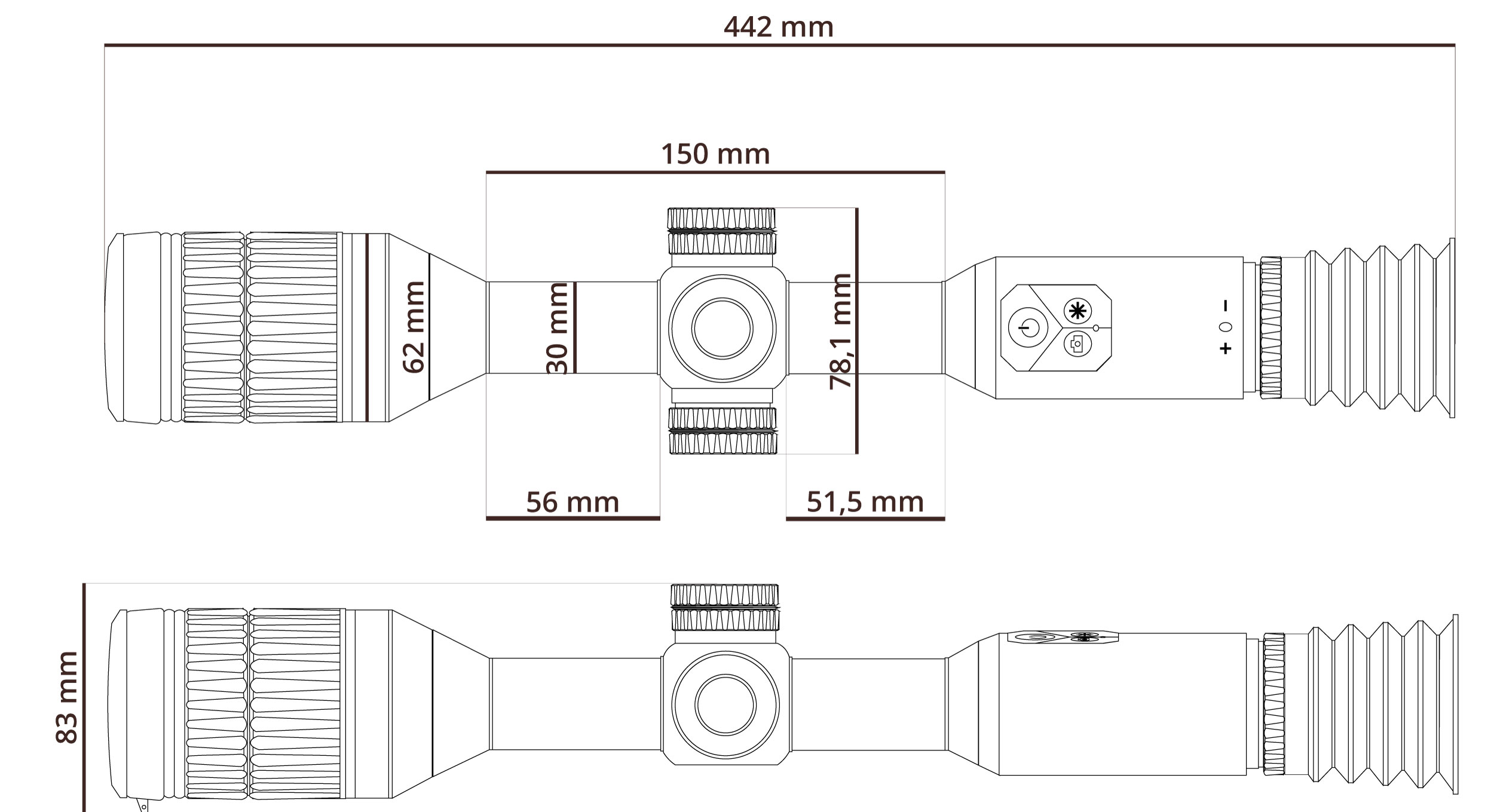 - Elektronicznie ustawiany krzyż na wyświetlaczu ułatwia zerowanie lunety na broni.
