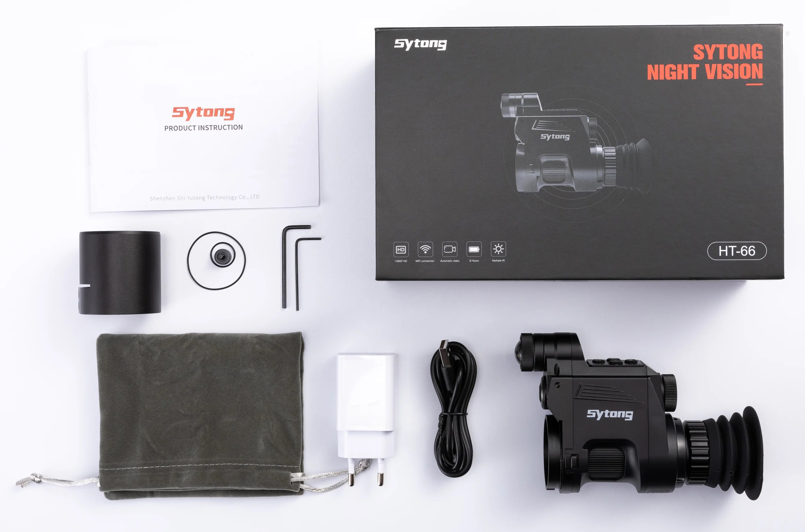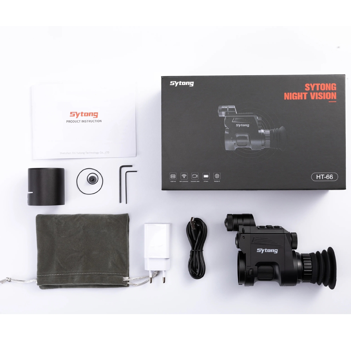 Sytong HT-66 posiada powiększenie: optyczne 4x oraz cyfrowe 14x. Dużą zaletą jest brak pogorszenia obrazu podczas zbliżenia cyfrowego dzięki zastosowanemu wyświetlaczowi OLED o rozdzielczości 1024x768. Urządzenie zostało wyposażone w czytnik kart pamięci microSD do 32GB, pozwalający na zapis filmów 1920x1080 30FPS oraz zdjęć 2608x1944 5Mpix. Zasilanie stanowi akumulator 18650. Można go ładować przez port USB umieszczony w urządzeniu co pozwala na zastosowanie powerbanku jako dodatkowego źródła energii.