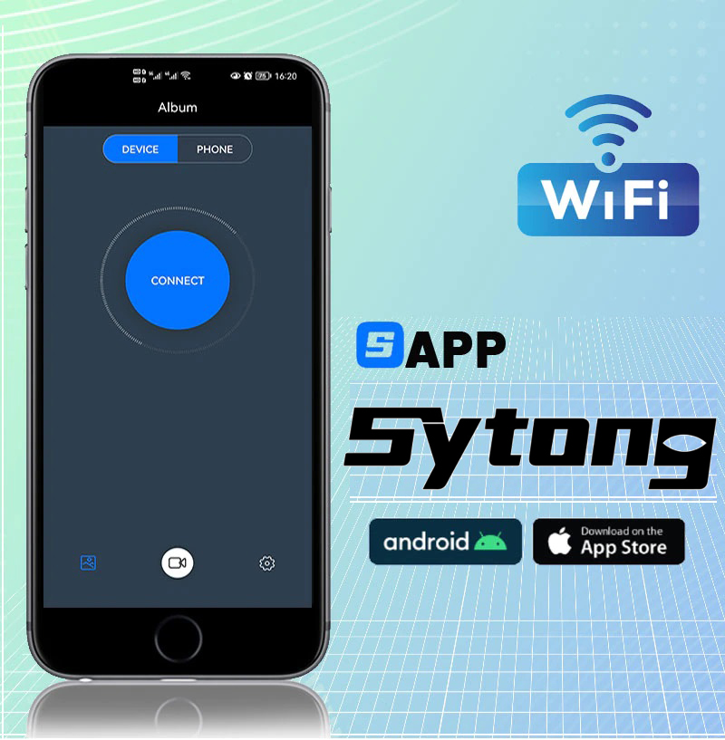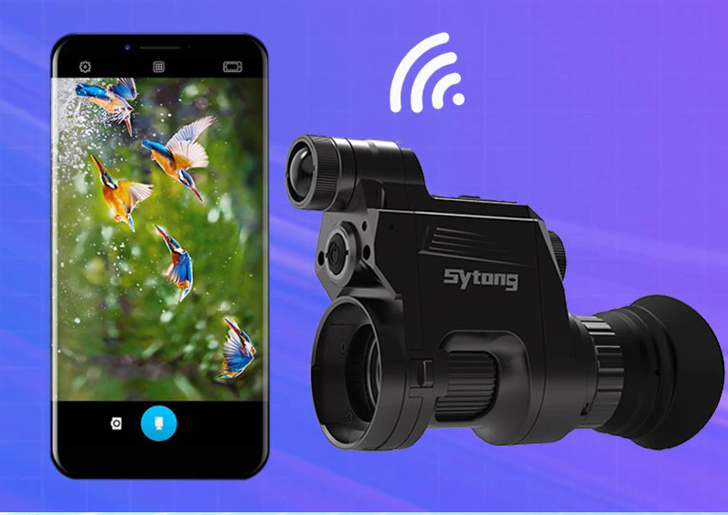 Nasadka noktowizyjna posiada możliwość komunikacji przez WIFI z zewnętrznymi urządzeniami z systemem iOS oraz Android przez specjalnie przygotowaną aplikację SYTONG.