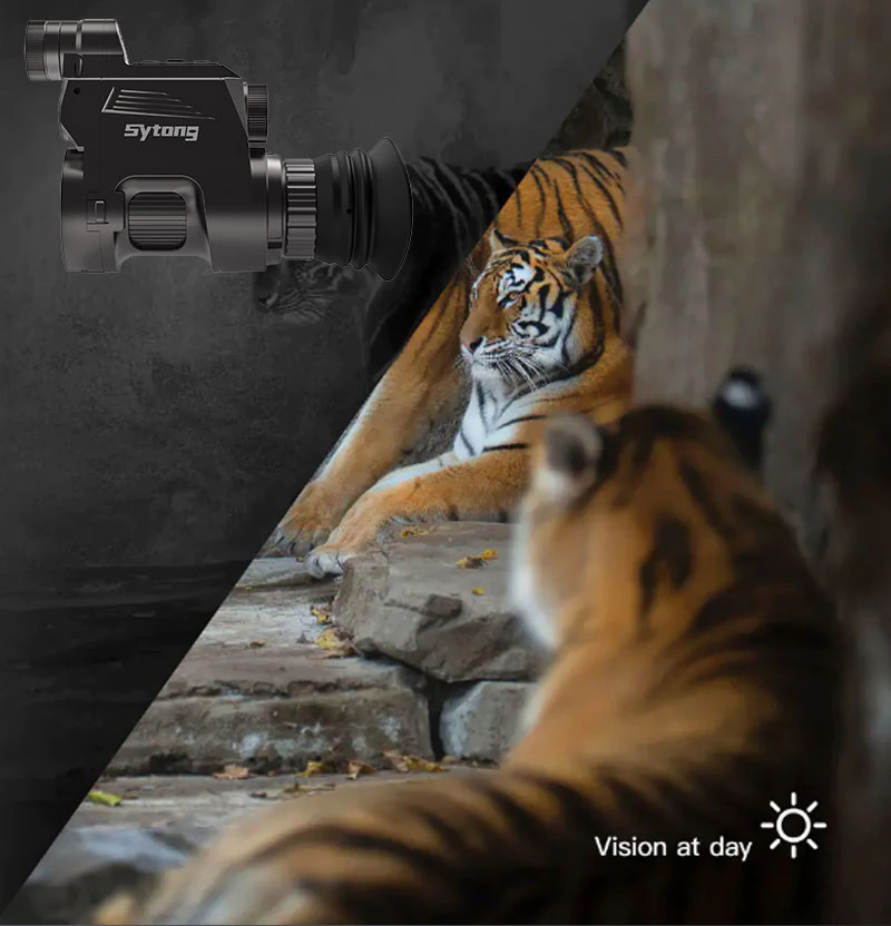 Nasadka noktowizyjna SYTONG HT-66 to model w którym zastosowano ekran OLED. Urządzenie posiada dwie funkcje: nasadki na lunetę oraz samodzielnego noktowizora monookularu. Produkt wyróżnia się wysoką rozdzielczością oraz szerokim polem widzenia. Zastosowany obiektyw zapewnia wysokiej jakości obraz.