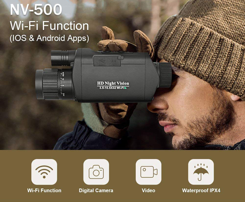 Noktowizor cyfrowy Bestguarder NV-500 3,5x31 - HD 720p, IPX4, zasięg w ciemności do 350m, WiFi
