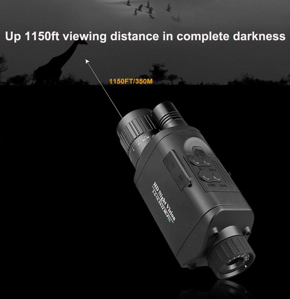 Noktowizor posiada optykę z powłokami antyodblaskowymi, 3,5-krotne powiększenie optyczne oraz 3-krotny zoom cyfrowy. Dzięki temu pokazuje obraz do 350 metrów odległości przy zmiennych warunkach oświetleniowych. Światło podczerwieni 850nm nie jest widoczne dla ludzi i zwierząt.