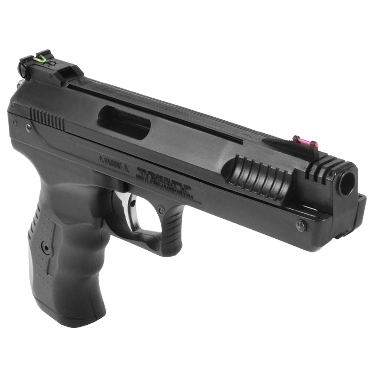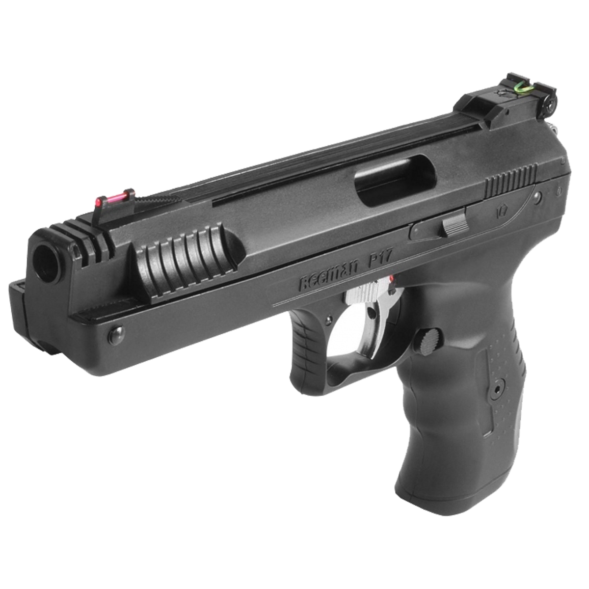 Wiatrówka BEEMAN P-17 2004 - pistolet pneumatyczny PCA na śrut ołowiany diabolo o kal. 4,5mm. Korpus został wykonany z polimeru natomiast cały szkielet z metalu. Gwintowana lufa zapewnia dobrą celność. Wiatrówka posiada górną szynę do montażu kolimatora lub celownika pistoletowego. System światłowodowy Tru-Glo ułatwia celowanie za pomocą stałej muszki i regulowanej szczerbinki. Bezpiecznik manualny chroni przed oddaniem niekontrolowanego strzału. Teksturowana rękojeść zapewnia pewny chwyt. W pistolecie PCA sprężenie powietrza odbywa się za pomocą ruchu dźwignią.