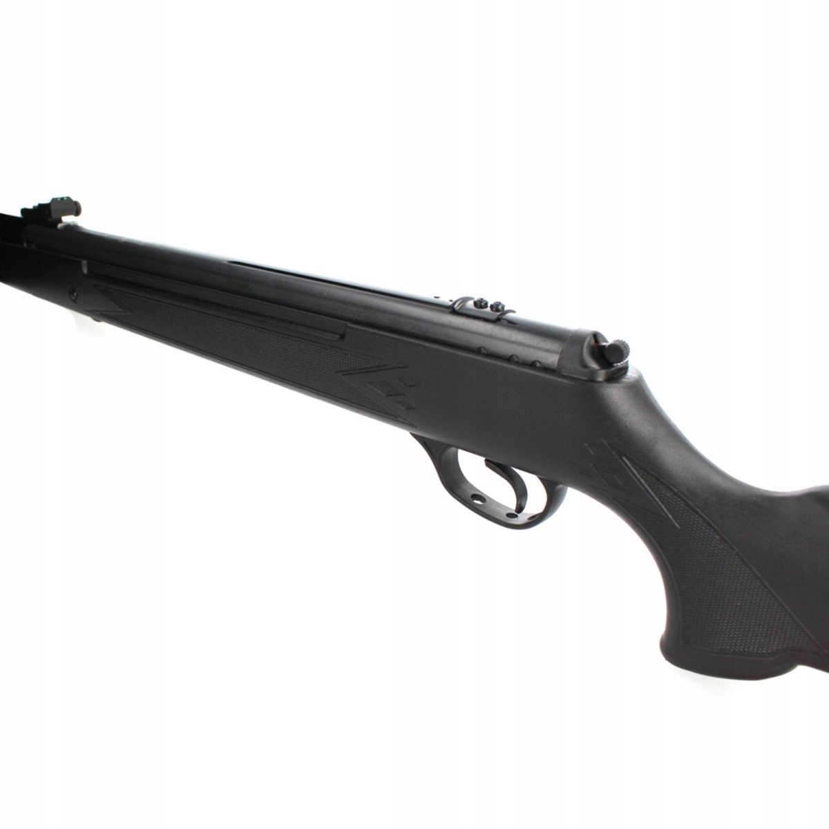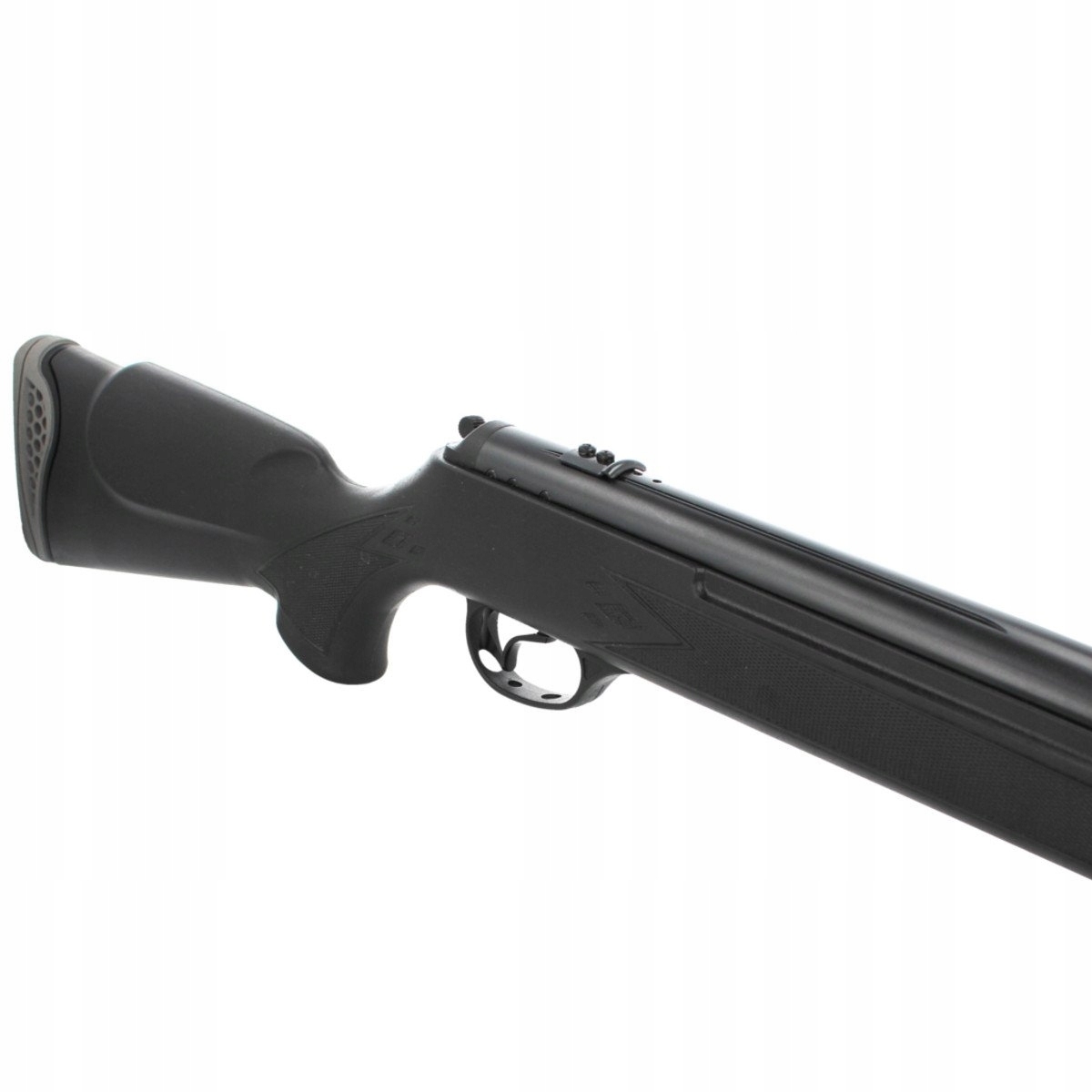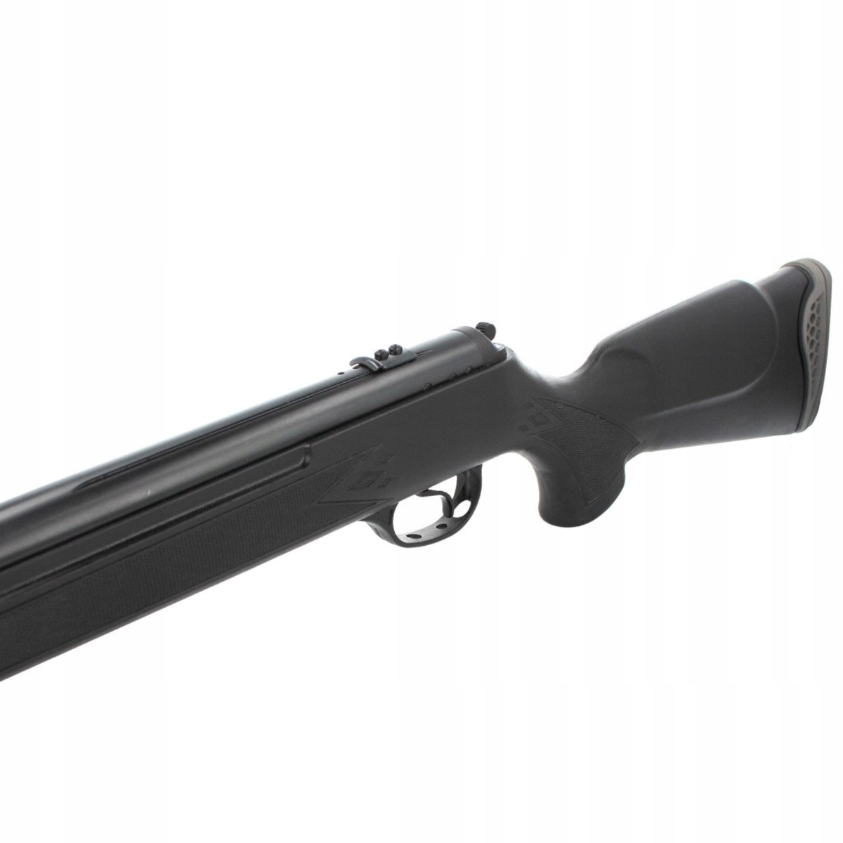 - Automatyczny bezpiecznik umieszczony w tylnej części cylindra wiatrówki chroni przed oddaniem niekontrolowanego strzału.
