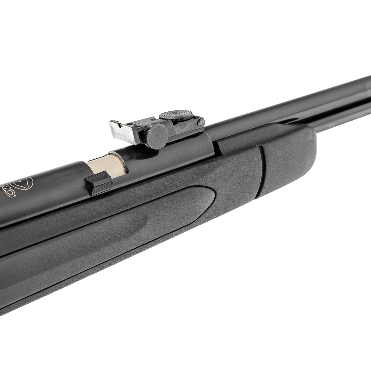 - Zamontowanie celownika optycznego lub kolimatorowego jest możliwe dzięki szynie montażowej standardu 11 mm znajdującej się na grzbiecie komory sprężania.