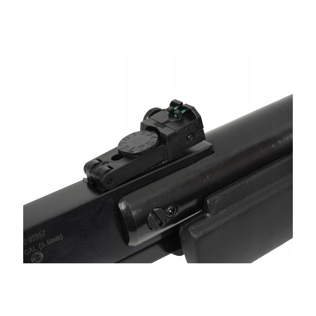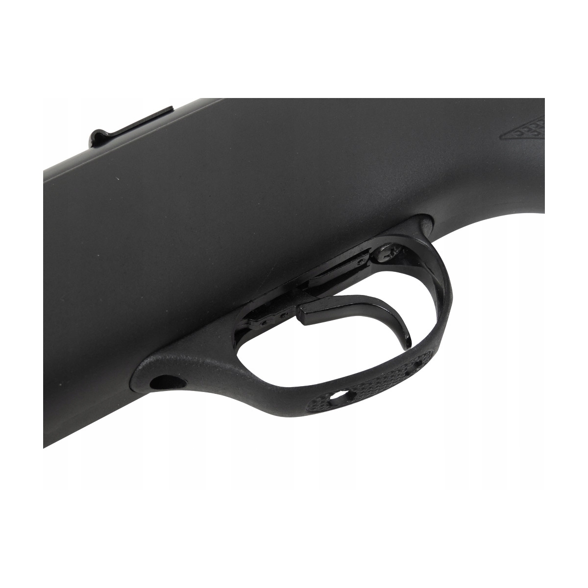 - Bezpieczeństwo obsługi – automatyczna blokada bezpiecznika zabezpieczająca wiatrówkę przed niepożądanym wystrzałem