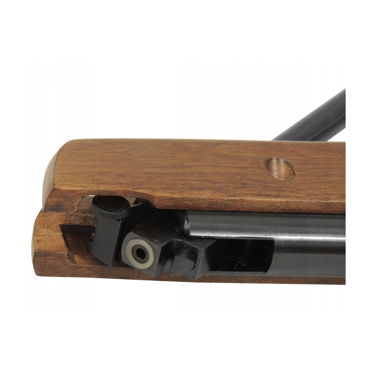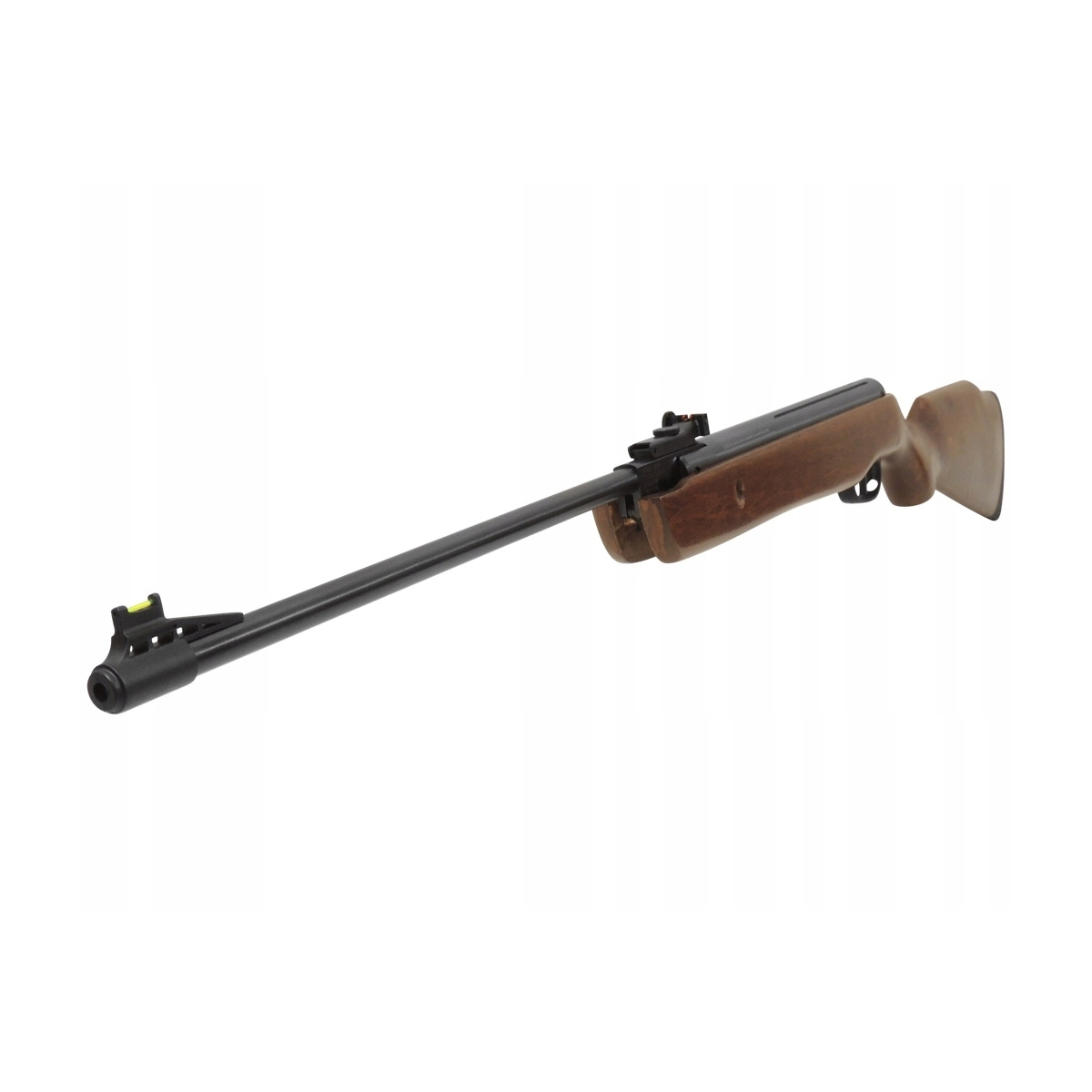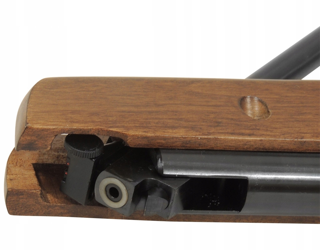 - Wiatrówka wyposażona jest w przyrządy celownicze ze światłowodami - zielonymi w muszce oraz czerwonymi w regulowanej szczerbince, które pozwalają na łatwe celowanie nawet przy niesprzyjających warunkach oświetleniowych.
