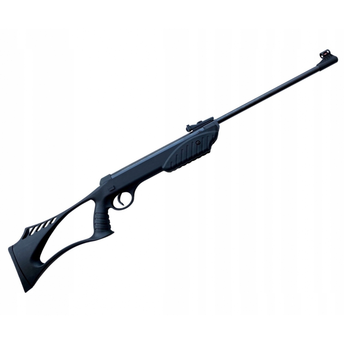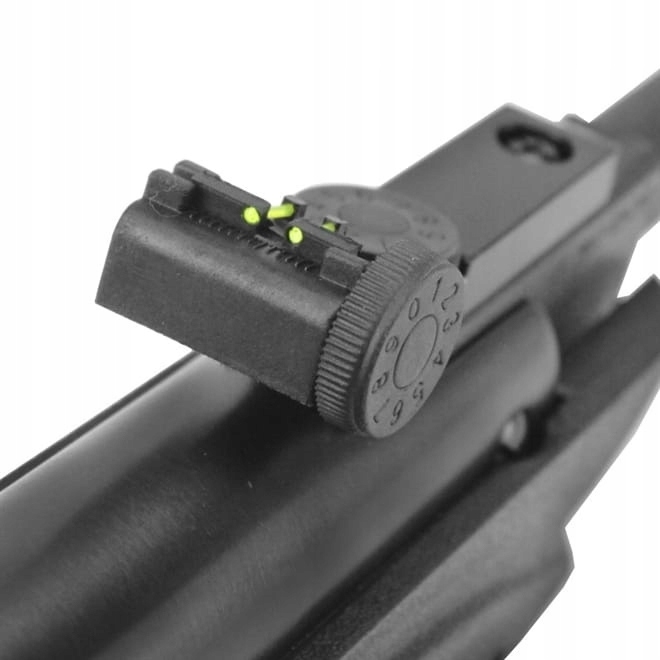 - Wiatrówka wyposażona w polimerową osadę z wycięciem na dłoń.