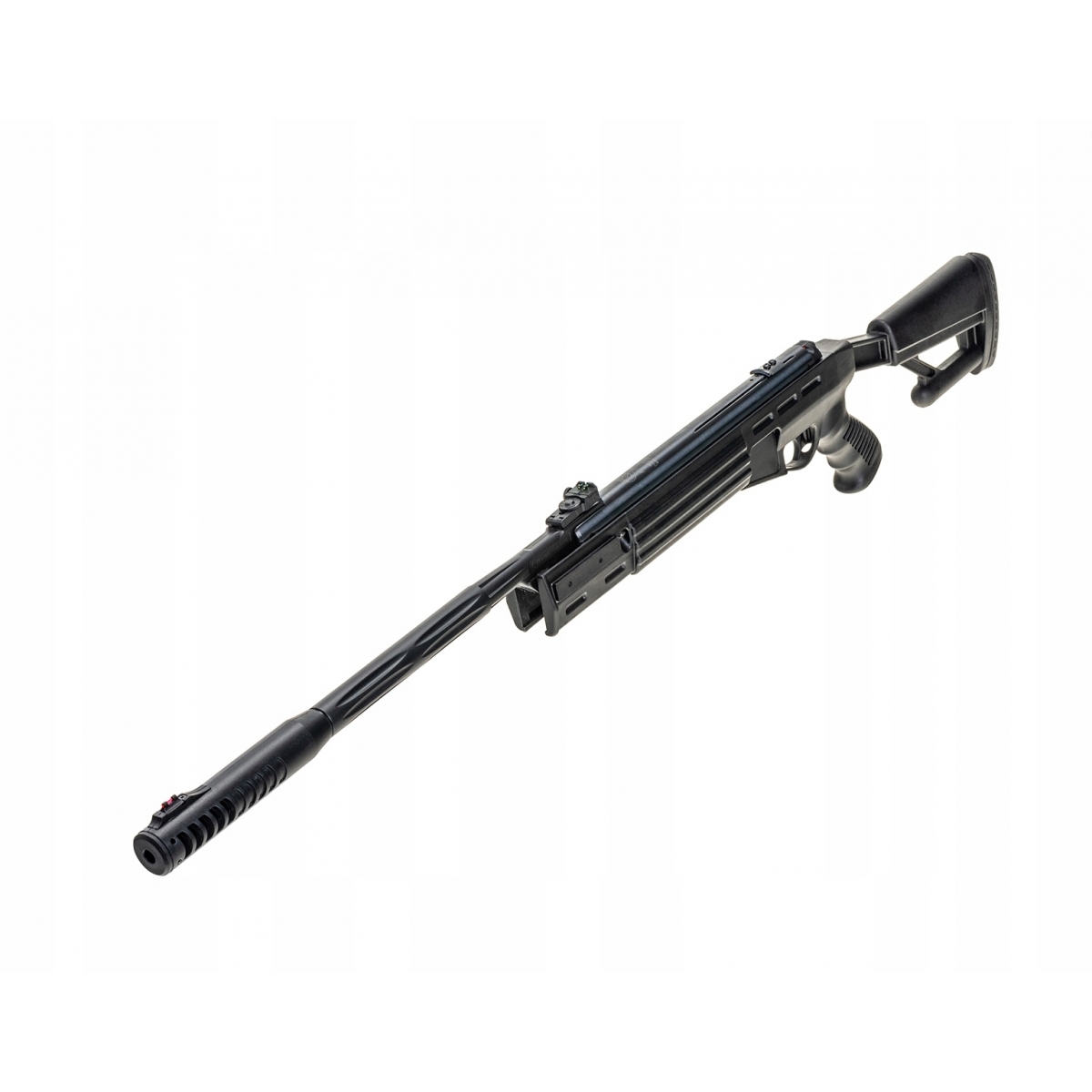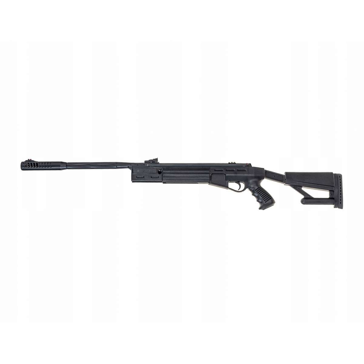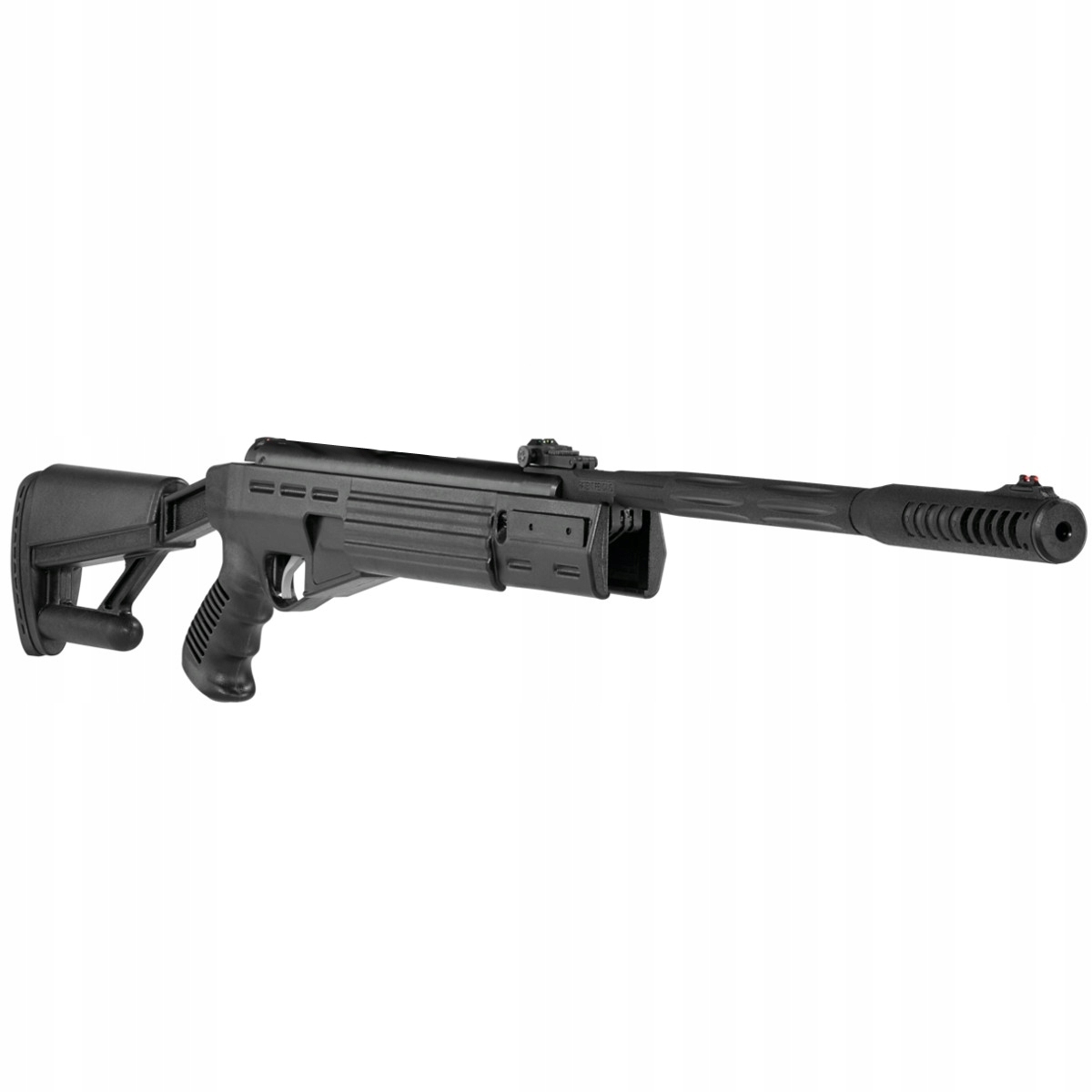 Wiatrówka Airtact QE - to najnowszy model wiatrówki klasycznie łamanej z kolbą taktyczną oraz zintegrowanym tłumikiem. Osada z chwytem pistoletowym została wykonana z trwałego i mocnego polimeru. Pewny chwyt zapewnia ryflowanie na chwycie oraz środkowej części łoża. Kolba przystosowana została zarówno dla osób prawo- jak i lewo- ręcznych. Na jej końcu znajduje się wentylowana gumowa stopka osłabiająca energię odrzutu. Gwintowana lufa została pokryta polimerową warstwą ochronną i zakończona zintegrowanym tłumikiem. Wiatrówka posiada 11mm szynę montażową pozwalającą zamocować dowolny celownik optyczny. Przed oddaniem niekontrolowanego strzału chroni bezpiecznik automatyczny. W tym modelu zastosowana światłowodowe stałe przyrządy celownicze muszkę i szczerbinkę.