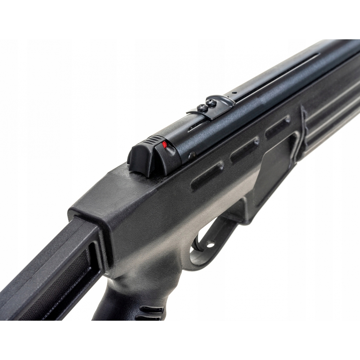 - Wiatrówka posiada automatyczny bezpiecznik chroniący przed niekontrolowanym oddaniem strzału.