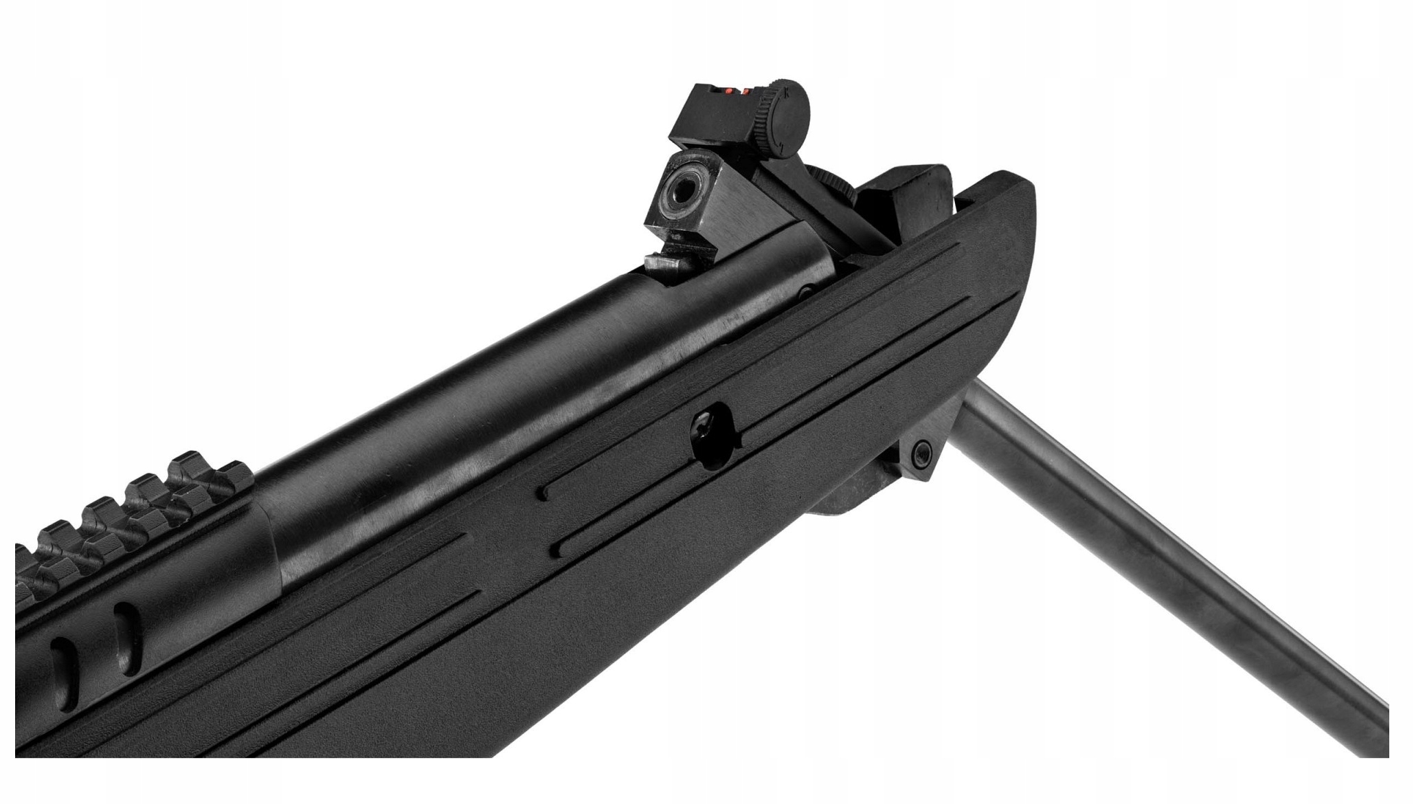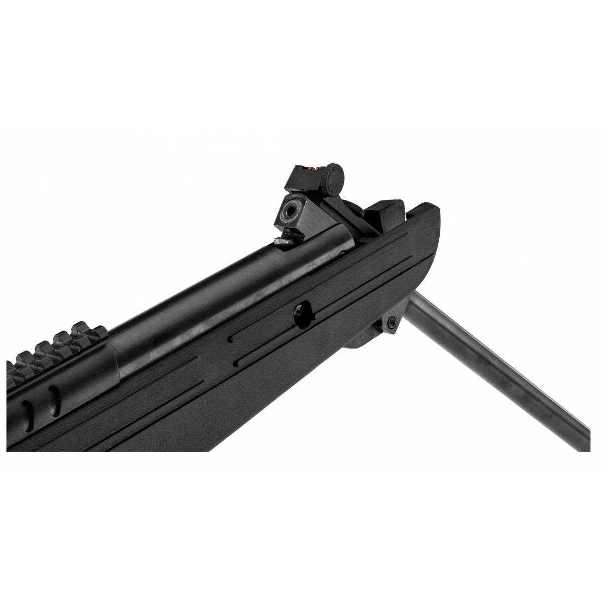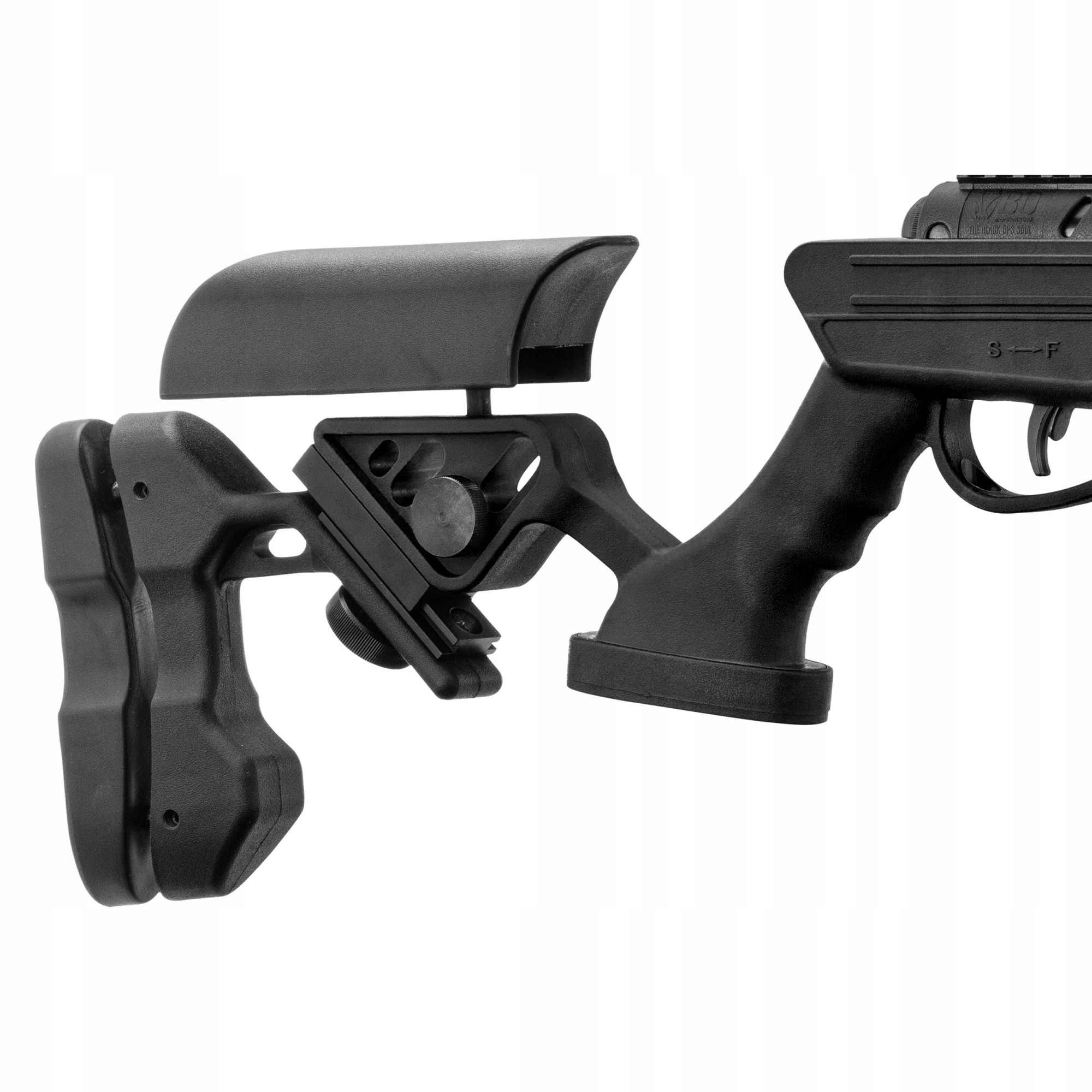 Wiatrówka Karabinek Black OPS QUANTICO - to unowocześniona wersja wiatrówki marki BO Manufactue. Wykonana została z trwałego polimeru w kolorze czarnym. W wersji Quantico V2 gwintowana lufa długości 478 mm posiada zewnętrzną polimerową warstwę ochronę, która zapobiega wygięciu lufy. Wiatrówka strzela śrutem diabolo w kalibrze 4,5 mm. Pistoletowy chwyt, który ma ergonomiczne kształty oraz anatomiczne żłobienia pozwala na wygodne trzymanie broni. Na grzbiecie umieszczono szynę montażową 22 mm R.I.S, którą można ściągnąć, a pod nią znajduje się standardowa szyna montażowa 11 mm.