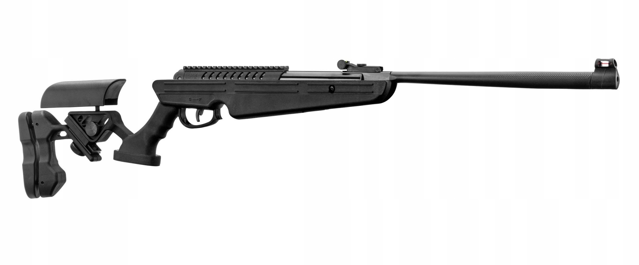 Do celowania służą otwarte i regulowane światłowodowe przyrządy celownicze Tru-Glo. Prędkość początkowa wynosi 250 m/s i pozwala strzelać na 20 metrów. Aby naciągnąć sprężynę należy klasycznie przełamać lufę. Automatyczny bezpiecznik zabezpiecza przed oddaniem przypadkowego strzału. Znajduje się on przed językiem spustowym. Wiatrówka jest dość lekka i krótka oraz posiada kolbę, którą można wygodnie dopasować do każdego strzelca. Dla zwiększenia wygody celowania zamontowana została regulowaną bakę policzkową oraz stopkę, która jest gumowana i rozsuwana dlatego wiatrówka będzie wygodna dla każdego. Wiatrówka posiada system redukcji odrzutu.