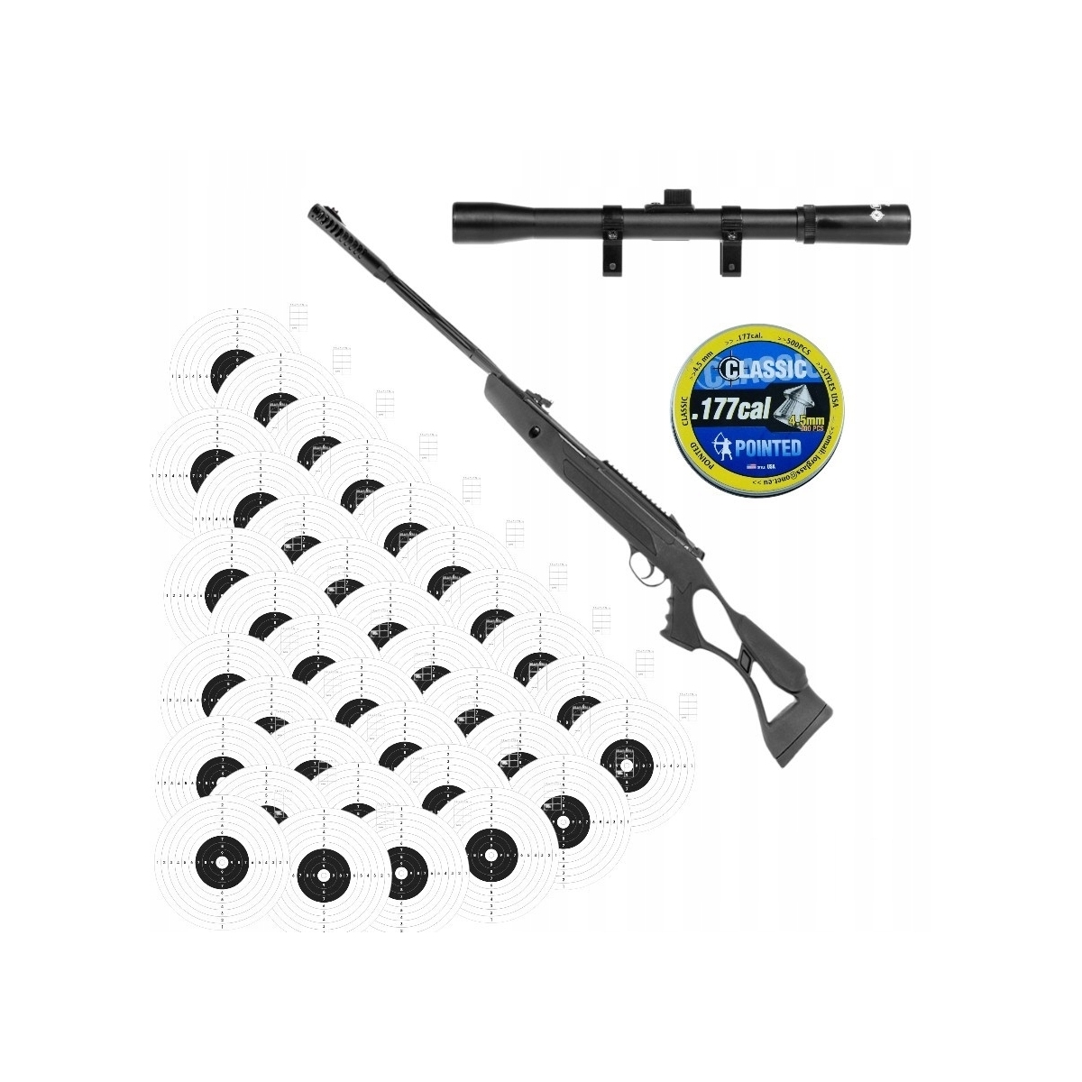 Wiatrówka sprężynowa Hatsan AIRTACT ED GEN-2 .177 ZESTAW luneta śrut tarcze