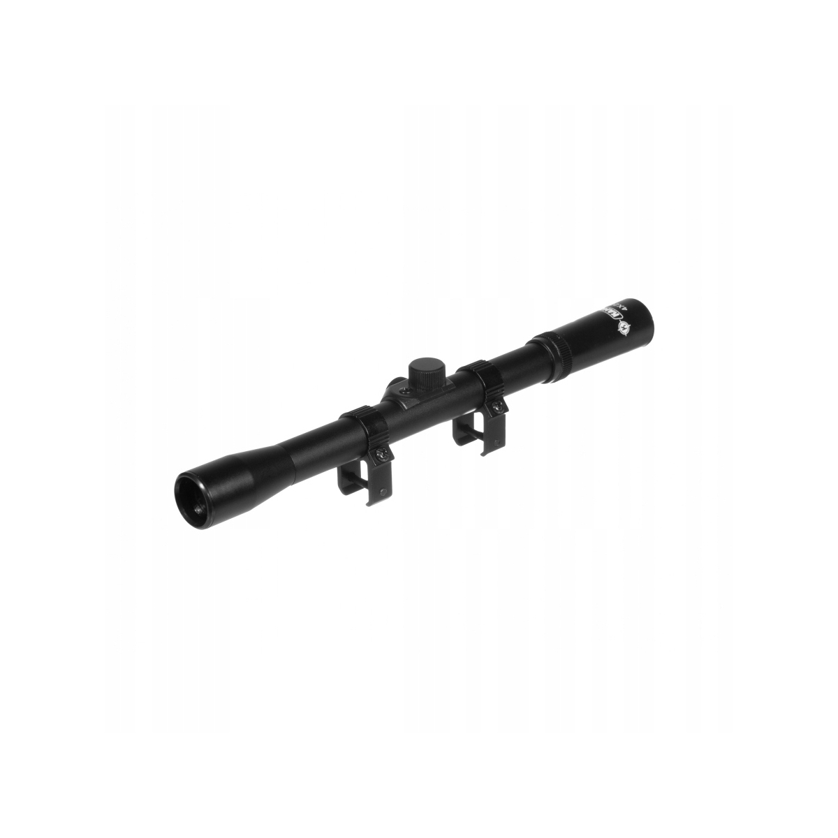 Celownicza luneta stałoogniskowa firmy Kandar. Średnica obiektywu 20 mm. Powiększenie x4. Luneta przystosowana jest specjalnie do wiatrówek. W komplecie znajduje się dwuczęściowy montaż.
