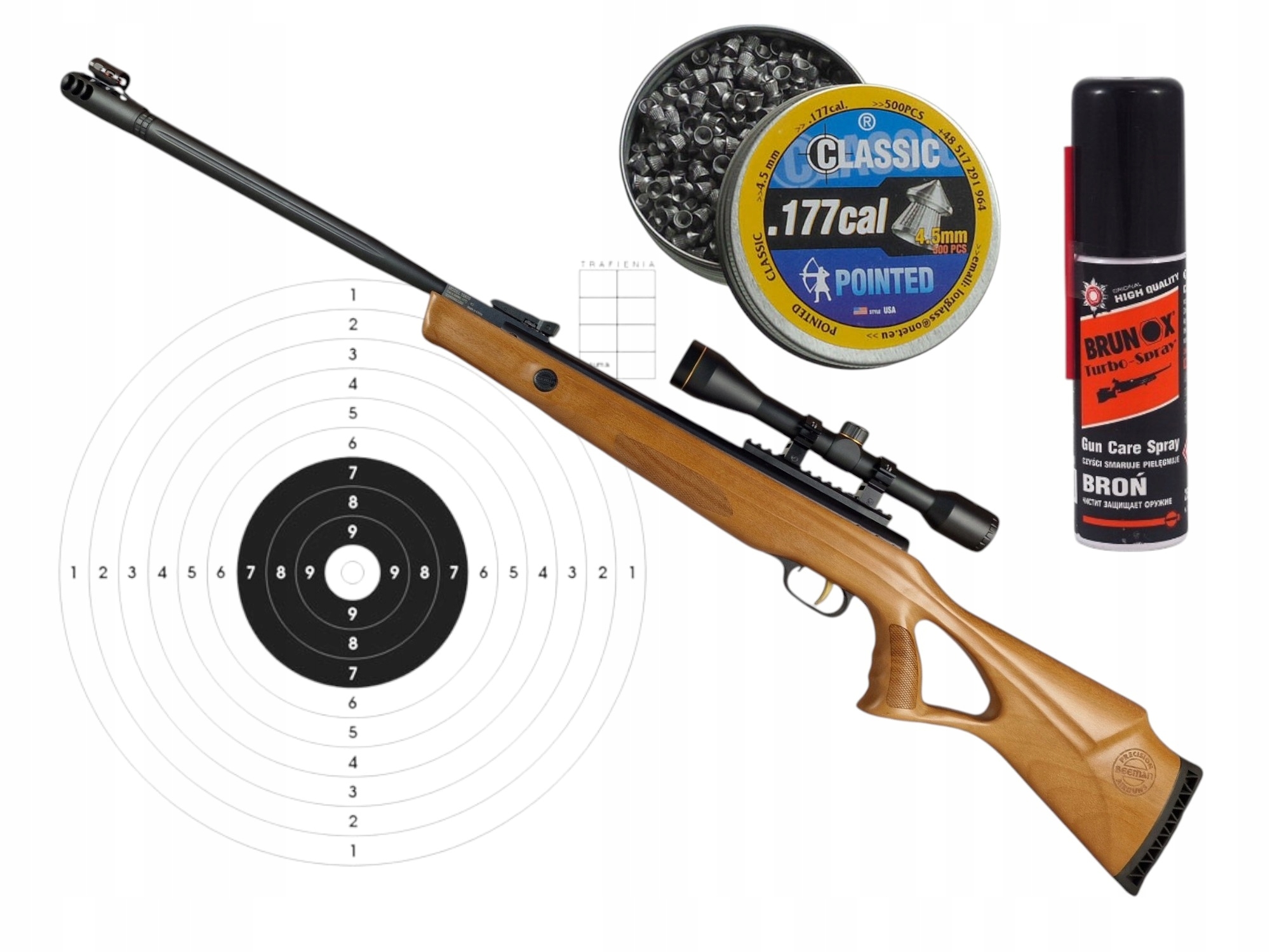 Wiatrówka sprężynowa Beeman 10620 z lunetą 4,5 mm + tarcze śrut olej ZESTAW