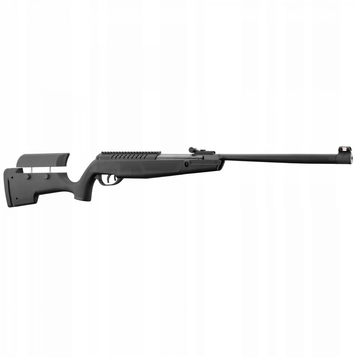 ⭐ W tym modelu zastosowano także kolbę z regulowaną bakę policzkową, dzięki czemu strzelec może dostosować jej wysokość względem optyki lub własnych preferencji. Dodatkowym atutem jest opcja regulacji długości osady (w zakresie 40 mm), dzięki której z wiatrówki mogę strzelać osoby o różnym wzroście.