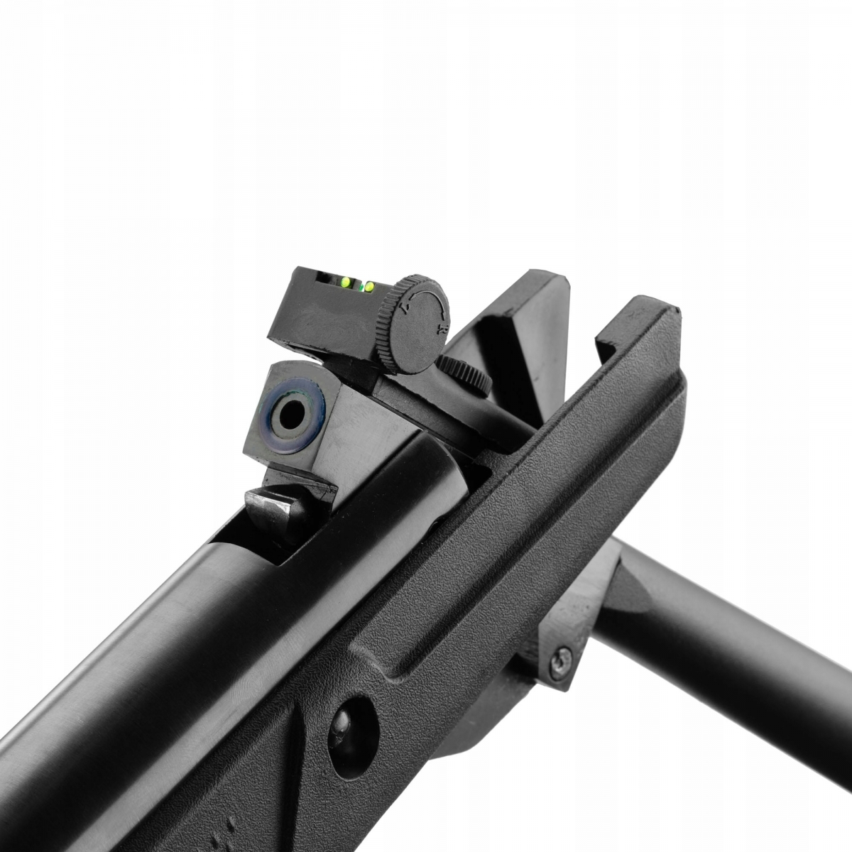⭐ Karabinek został wyposażony w dobrej klasy światłowodowe przyrządy celownicze tj. tunelową muszkę oraz regulowaną w pionie i poziomie szczerbinkę. Światłowody pręciki o kontrastowej (zielono-czerwonej) kolorystyce, znacznie przyspieszają zgrywanie muszki i szczerbinki, a dzięki wysokiej absorpcji światła, są dobrze widoczne nawet przy słabszym oświetleniu.