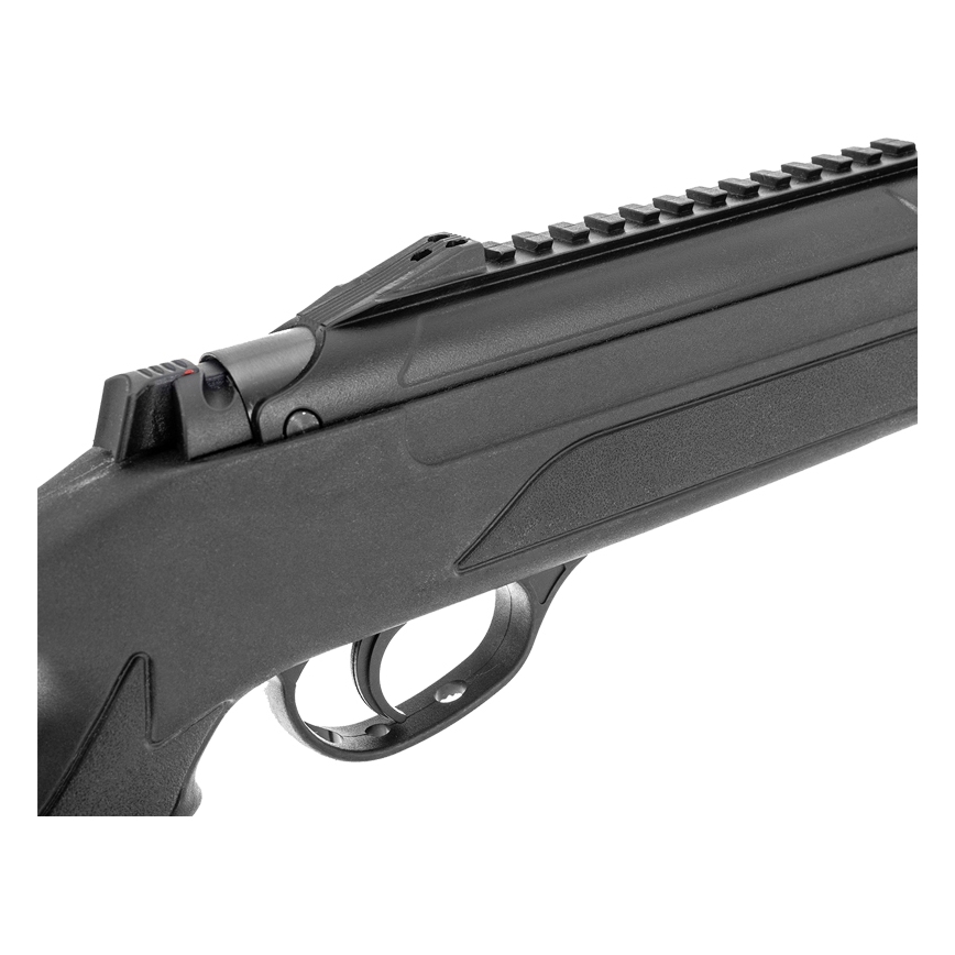 HATSAN AIRTACT ED to najnowszy model wiatrówki klasycznie łamanej z polimerową kolbą, oraz zintegrowanym tłumikiem. Osada z chwytem pistoletowym została wykonana z trwałego i mocnego polimeru. Pewny chwyt zapewnia ryflowanie na chwycie oraz środkowej części łoża. Kolba przystosowana została zarówno dla osób prawo- jak i lewo- ręcznych. Na jej końcu znajduje się wentylowana gumowa stopka osłabiająca energię odrzutu. Gwintowana lufa została pokryta polimerową warstwą ochronną i zakończona zintegrowanym tłumikiem. Zastosowano nową wersję języka spustowego wykonanego z tworzywa posiadającego jednostopniową regulację. Wiatrówkę wyposażono 11mm szynę montażową pozwalającą zamocować dowolny celownik optyczny. Przed oddaniem niekontrolowanego strzału chroni bezpiecznik automatyczny. W tym modelu zastosowana światłowodowe stałe przyrządy celownicze muszkę i szczerbinkę.