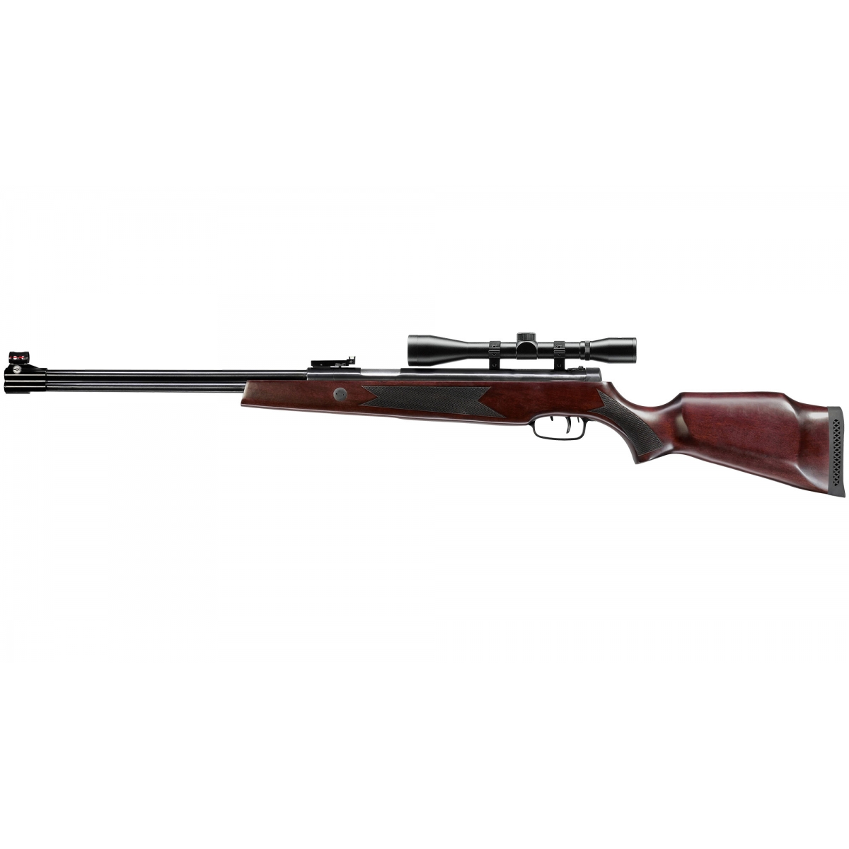 Karabinek Hammerli Hunter Force 900 Combo - to elegancka wiatrówka, której łoże wykonano z lakierowanego drewna o odcieniu ciemnej wiśni. W komplecie z lunetą znajduje się luneta 4x20