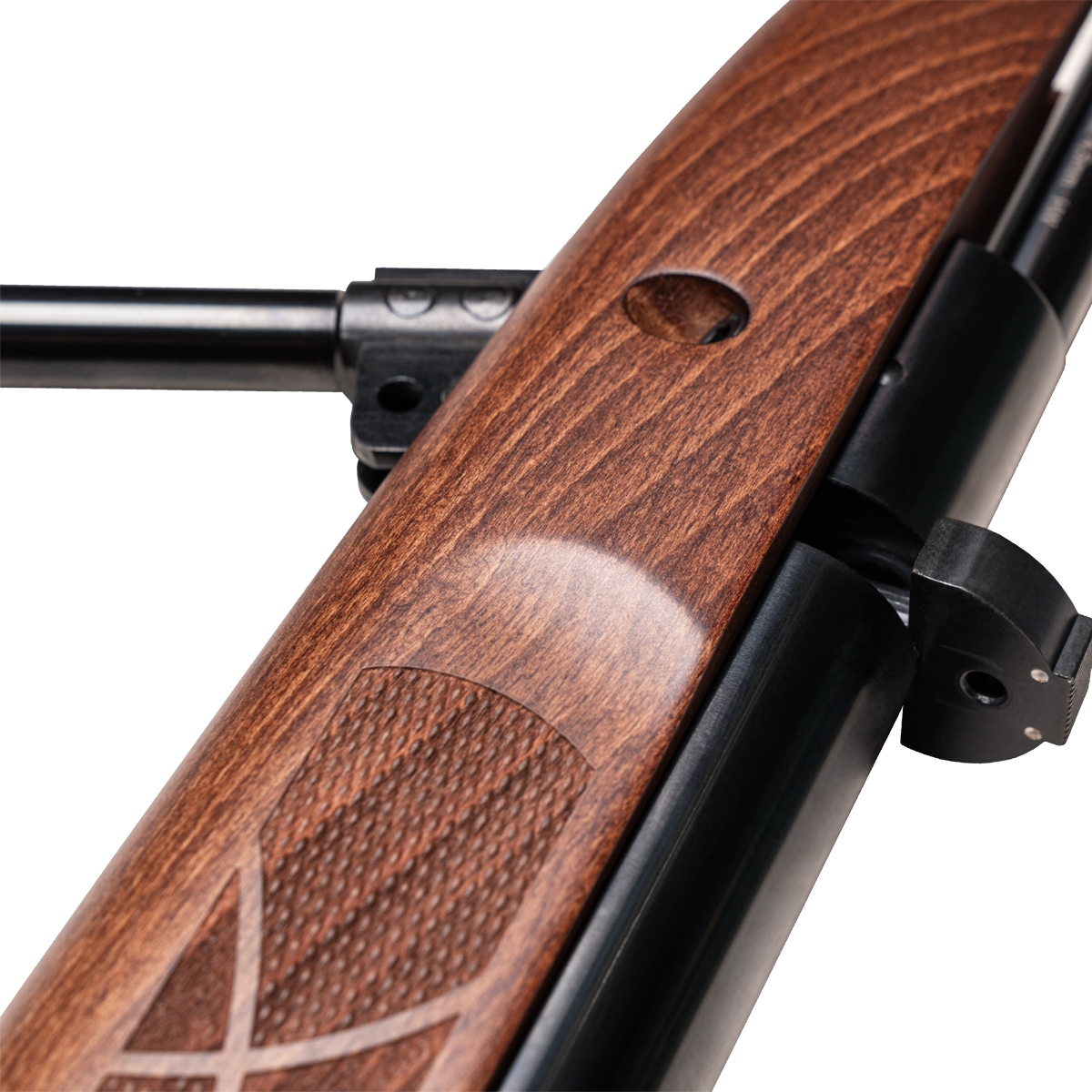 - Olchowe łoże, piękna oksyda, mechanizmy dopasowane na najwyższym poziomie, muszka ze szczerbinką wykonane z metalu.