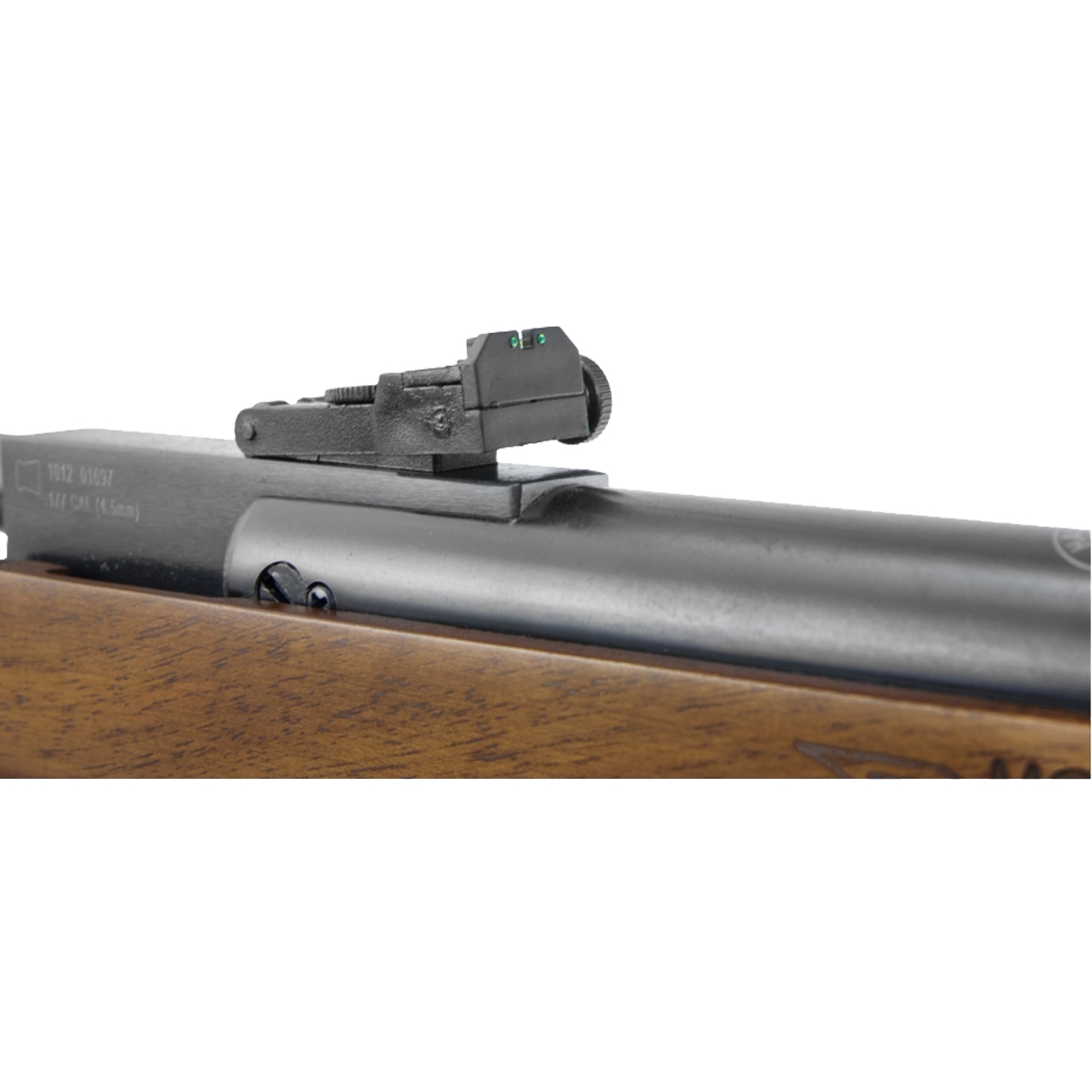 - Bezpieczeństwo obsługi – automatyczna blokada bezpiecznika zabezpieczająca wiatrówkę przed niepożądanym wystrzałem