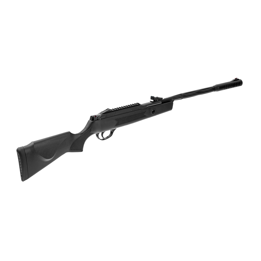 HATSAN ALPHA 4,5mm to wiatrówka klasycznie łamana z polimerową kolbą oraz zintegrowanym tłumikiem. Osada została wykonana z trwałego i mocnego polimeru. Pewny chwyt zapewnia ryflowanie na środkowej części łoża. Kolba przystosowana została zarówno dla osób prawo- jak i lewo- ręcznych. Na jej końcu znajduje się wentylowana gumowa stopka osłabiająca energię odrzutu. Gwintowana lufa została pokryta polimerową warstwą ochronną i zakończona zintegrowanym tłumikiem. Zastosowano nową wersję języka spustowego wykonanego z tworzywa posiadającego jednostopniową regulację. Wiatrówkę wyposażono 11mm szynę montażową pozwalającą zamocować dowolny celownik optyczny. Przed oddaniem niekontrolowanego strzału chroni bezpiecznik automatyczny. W tym modelu zastosowana światłowodowe stałe przyrządy celownicze muszkę i szczerbinkę.