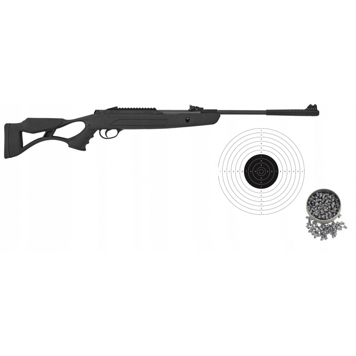 W zestawie: Airtact PD 4,5mm, olejek Brunox 25ml, opakowanie śrutu 250szt 4,5mm, komplet 20szt tarcz 14x14cm.
