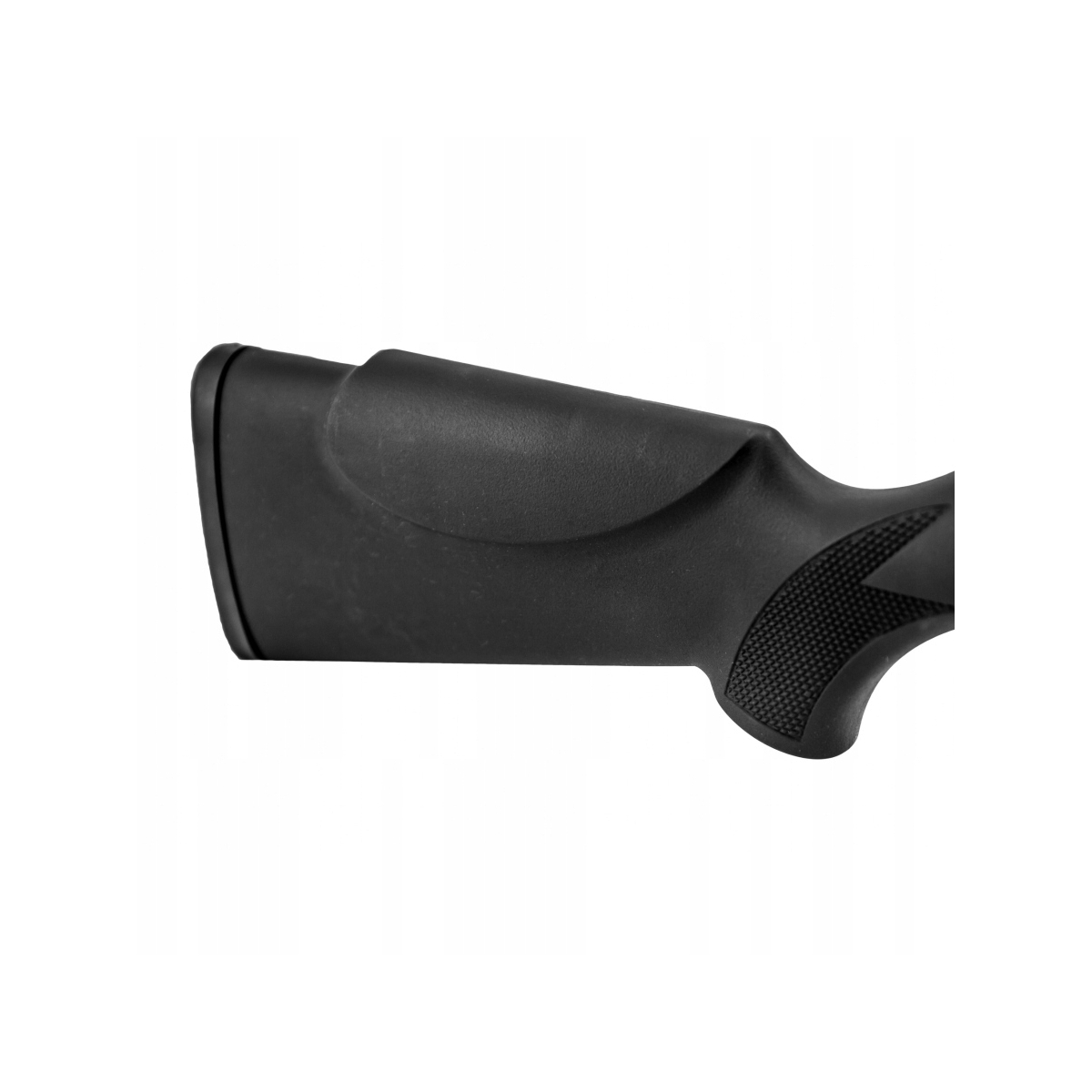 Jeden z najpopularniejszych w naszym kraju modeli wiatrówek firmy Hatsan, czyli model 90, doczekał się końcu tzw. liftu. Nie trzeba być znawcą, żeby na pierwszy rzut oka zauważyć nową osadę. Po wprowadzeniu zmian osada jest dłuższa i osłania kostkę lufy, która w poprzedniej wersji tej wiatrówki była odsłonięta. Obecne rozwiązanie powoduje przesunięcie środka ciężkości bardziej do przodu, co skutkuje lepszym wyważeniem. Wzmocniono stoper na szynie przeznaczonej do montażu optycznych przyrządów celowniczych. Poszerzono również możliwość jego regulacji. To nowe usprawnione oblicze sprawdzonej konstrukcji o wysokiej jakości wykonania. Proste i trwałe rozwiązania techniczne zastosowane w wiatrówce decydują o tym, iż jest to produkt wysoce bezawaryjny pozwalający się cieszyć długim bezobsługowym użytkowaniem.