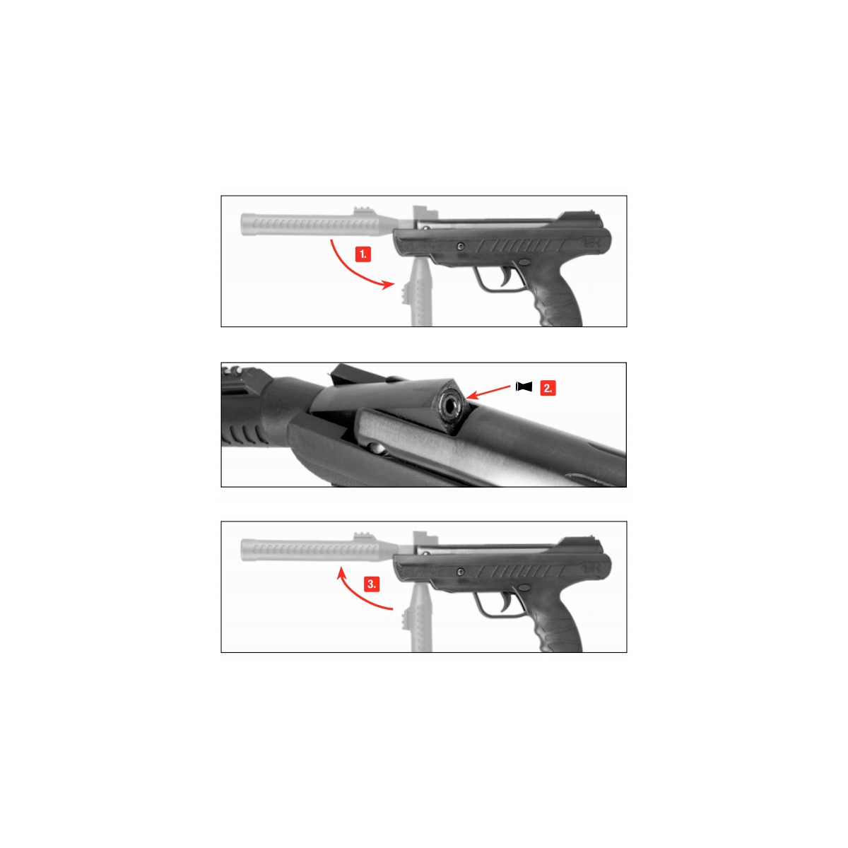 Śrut ładuje się bezpośrednio do lufy. Po “złamaniu lufy” mechanizm sprężynowo-tłokowy, dokonuje kompresji powietrza niezbędnej do kolejnego strzału. Ta klasyczna forma kompresji sprzyja również niezawodności. Nie potrzebujesz dodatkowego wyposażenia do sprężania powietrza.