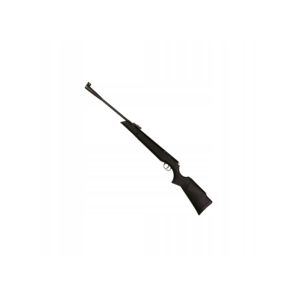 - Wiatrówka została wyposażona w automatyczny bezpiecznik, który po naciągnięciu sprężyny automatycznie blokuje spust uniemożliwiając oddanie niekontrolowanego strzału.