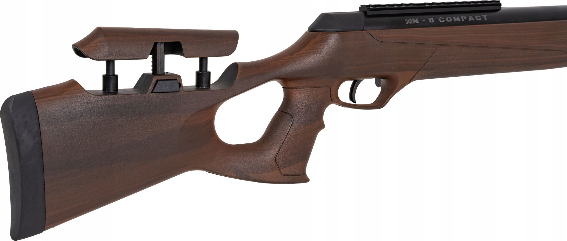 - Wiatrówka wyposażona w kolbę ambi dla osób prawo- i lewo-ręcznych.