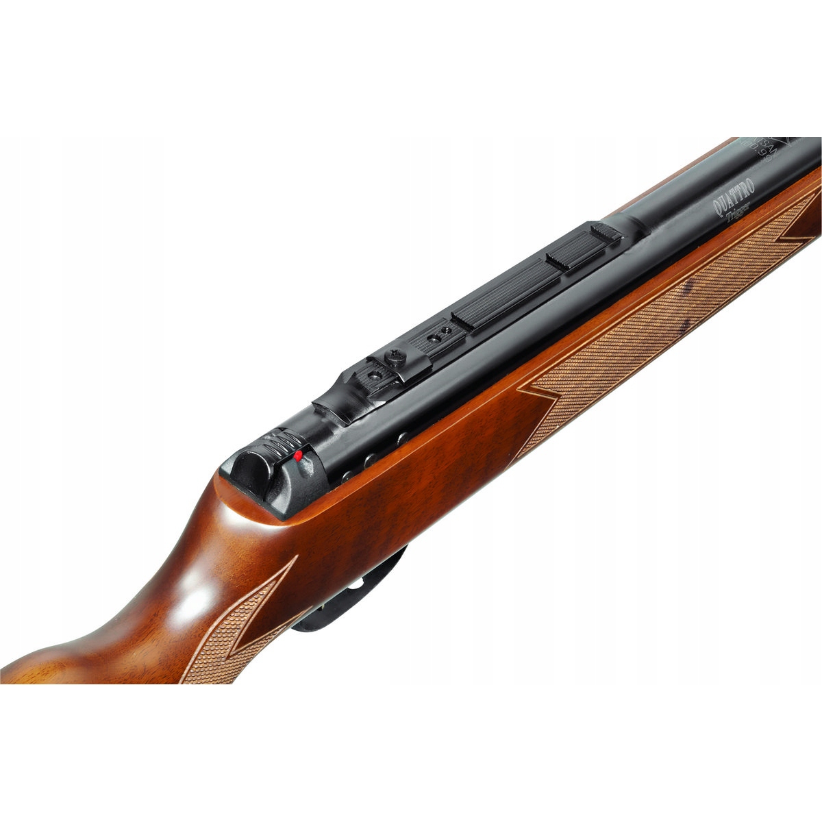 - Bezpieczeństwo obsługi – automatyczna blokada bezpiecznika zabezpieczająca wiatrówkę przed niepożądanym wystrzałem