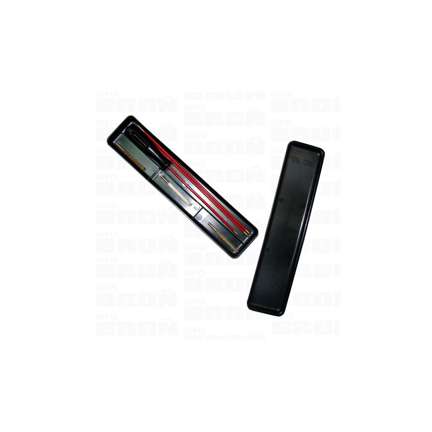 Zestaw wyciorów włoskiej firmy Stil Crin, składający się z trzech końcówek wykonanych z: mosiądzu, włosia i wełny. Długość wyciora: 540 mm. Wyciory są niezbędne przy konserwacji broni. Całość w plastikowym pudełku w kolorze czarnym.