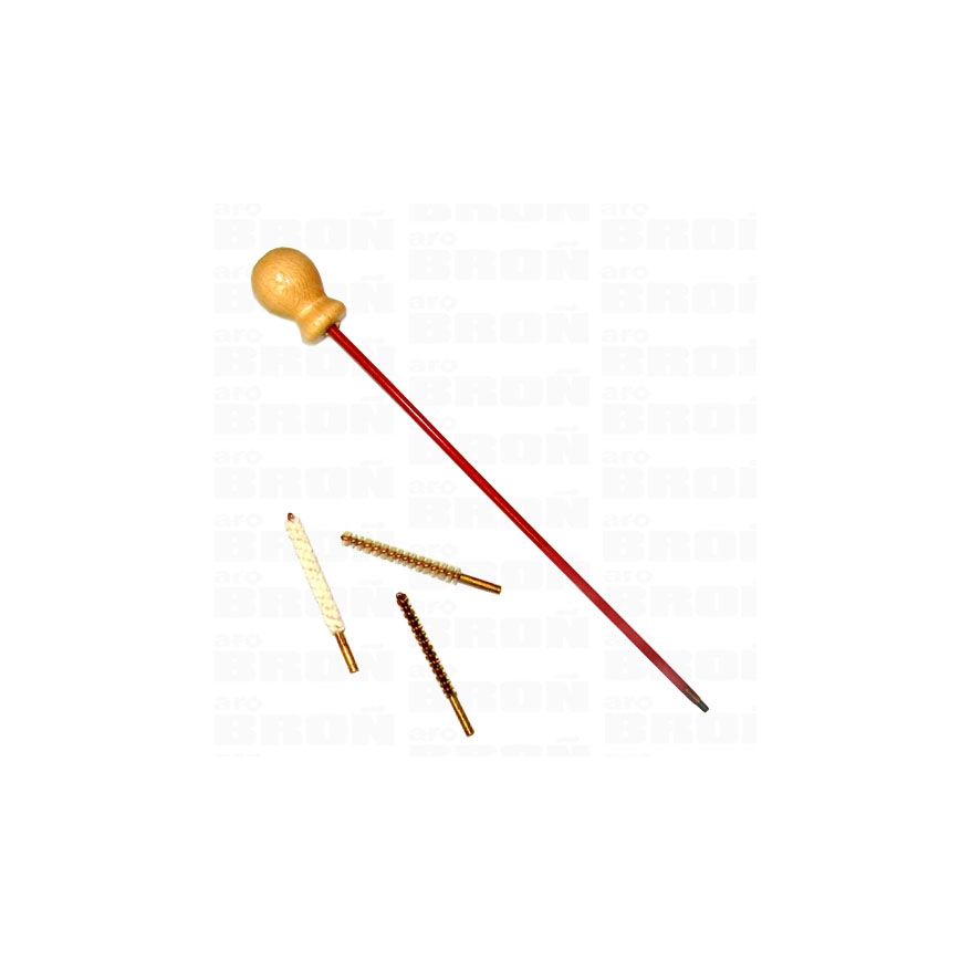 Zestaw wyciorów składający się z trzech końcówek wykonanych z: mosiądzu, włosia i wełny. Długość wyciora: 340 mm.