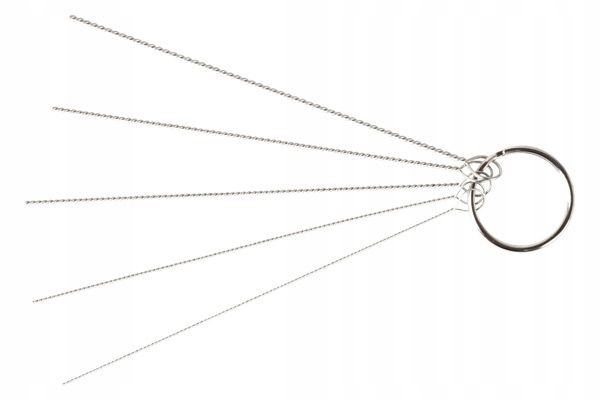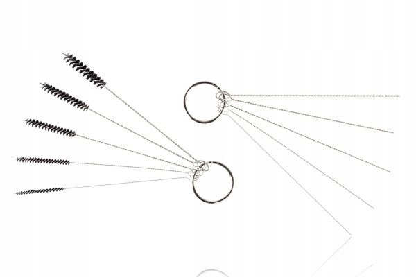 Wyciory AD-7603 - zestaw wyciorów oraz drucików do czyszczenia przewodu lufy w broni hukowo-alarmowej. Wyciory posiadają różną średnicę - od małej do 6mm, także druciki są różnej grubości, tak, aby dotrzeć między przegrodami lufy.