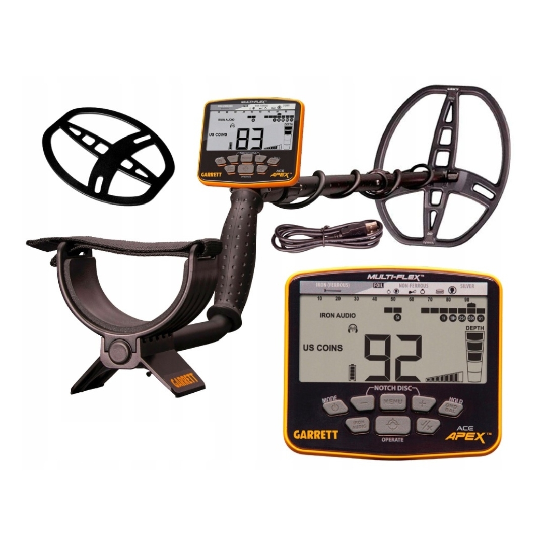 GARRETT ACE APEX Z SONDĄ 8,5X11' - to wykrywacz metali z wodoszczelną cewką Raider. Wyposażony w technologię Multi- Flex, która pozwala na dobieranie częstotliwości pracy automatycznie oraz ręcznie.