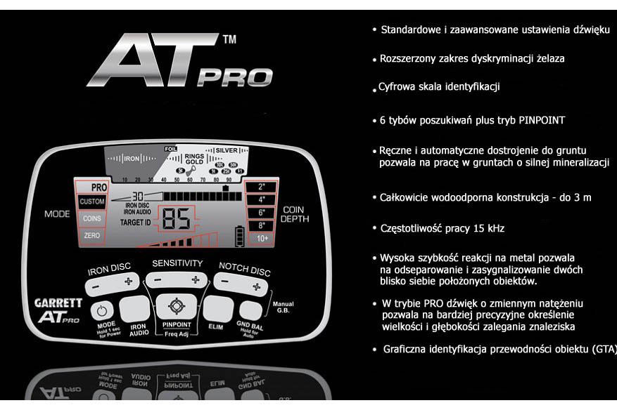 Garrett Metal Detector serii AT Pro to najnowszy detektor firmy Garrett o wszechstronnym zastosowaniu, umożliwiający pracę na lądzie oraz pod wodą. Garrett AT PRO stanowi klasę samą w sobie. Jest to jedyny wykrywacz na rynku charakteryzujący się funkcjonalnaścią wykrywacza naziemnego, będąc równocześnie wodoszczelnym.
