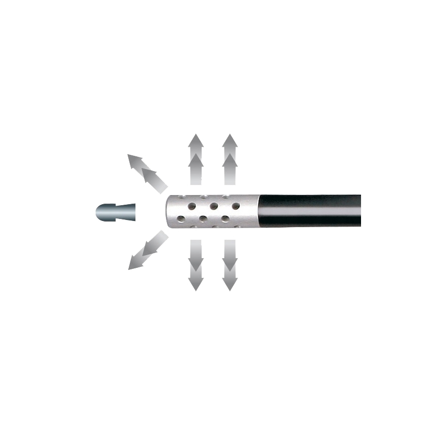 - Lufa zakończona jest kompensatorem, którego celem jest separacja gazów, co znacząco wpływa na celność oraz zmniejsza odrzut wiatrówki.