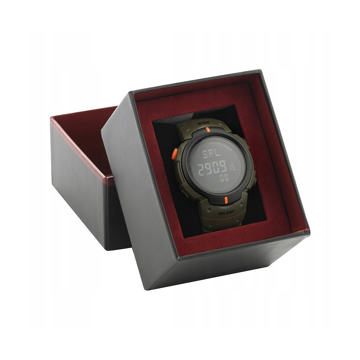- Zegarek wielofunkcyjny wyposażony został w wytrzymałą obudowę wykonaną z poliwęglanu oraz bezel z wytrzymałej stali nierdzewnej.